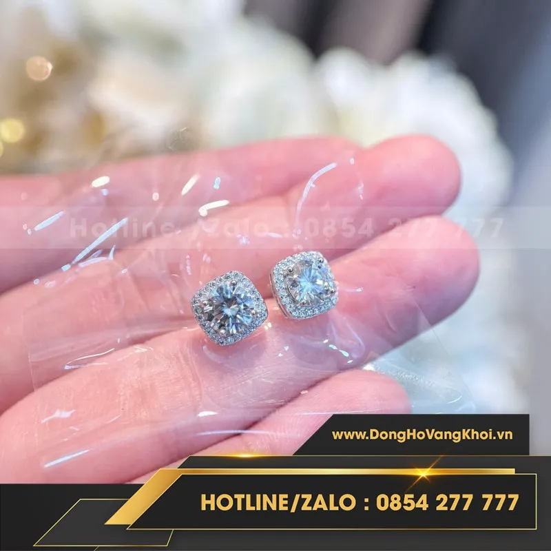 Bông Tai Super Earring Double Halo Custom Full Diamond