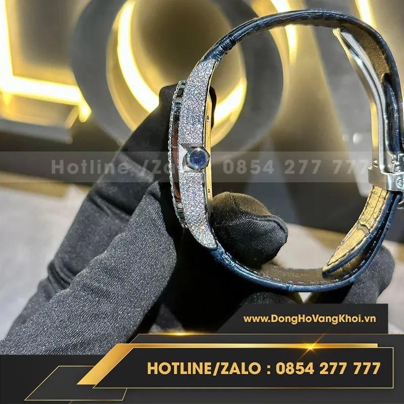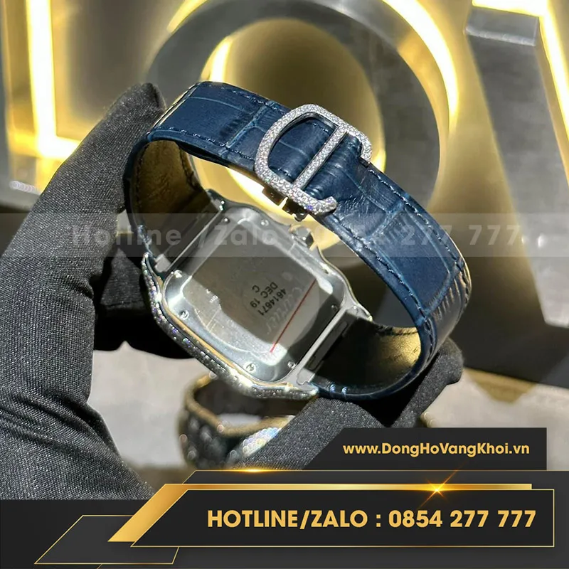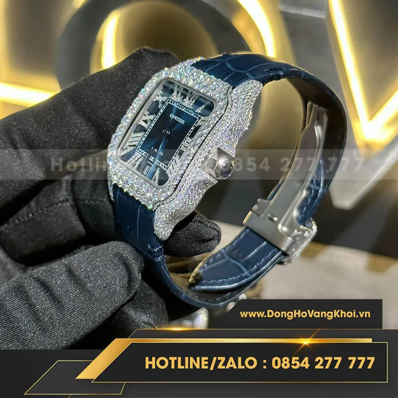 Cartier santos mặt xanh độ full moissanite size to