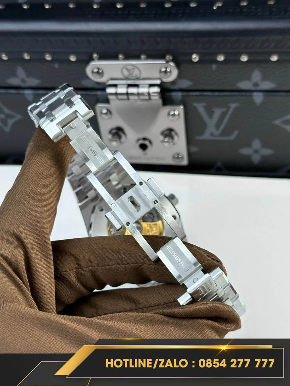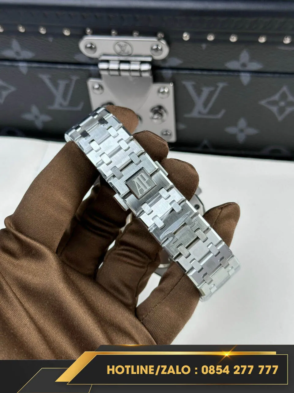 Đồng hồ Audemars Piguet fake Royal Oak 15400 mặt trắng mang đến vẻ đẹp tinh tế và thanh lịch, đặc trưng của dòng Royal Oak danh tiếng. Với kích thước 41mm, chiếc đồng hồ này vừa vặn và thoải mái trên cổ tay. Độ mỏng chỉ 9.8mm, tương đương với phiên bản chính hãng, tạo nên một diện mạo thanh thoát và hiện đại. Mặt số màu trắng trang nhã kết hợp với các chi tiết sắc nét, làm nổi bật phong cách sang trọng và đẳng cấp.