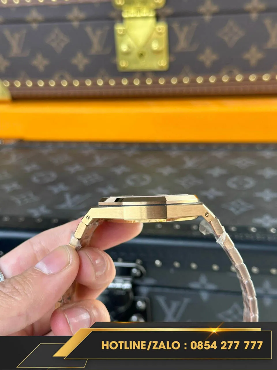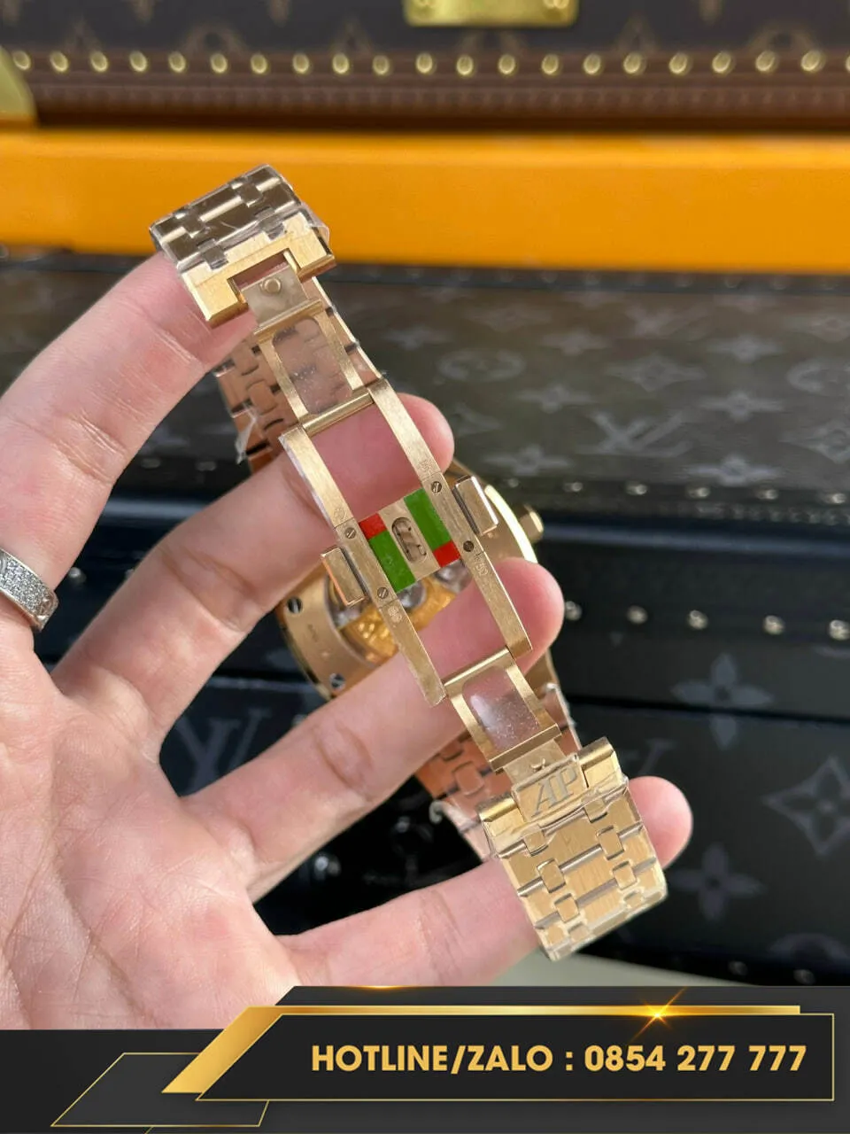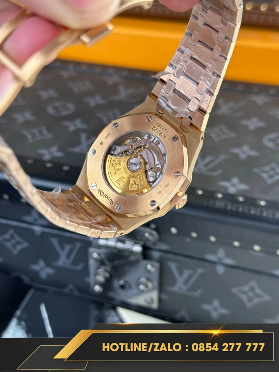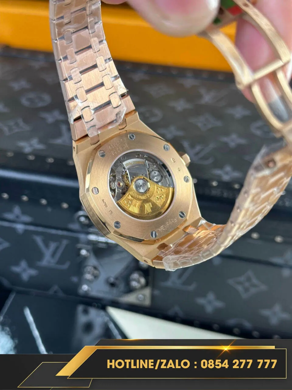 Đồng hồ Audemars Piguet Royal Oak 15400 vàng hồng replica được trang bị bộ máy Calibre 3120, nổi tiếng về độ chính xác và độ bền. Bộ máy này, sản xuất bởi ZF Factory, đảm bảo hiệu suất hoạt động tối ưu với khả năng dự trữ năng lượng lên đến 60 giờ. Sự kết hợp giữa công nghệ tiên tiến và tay nghề thủ công tinh xảo tạo nên một chiếc đồng hồ không chỉ đẹp mắt mà còn rất đáng tin cậy.