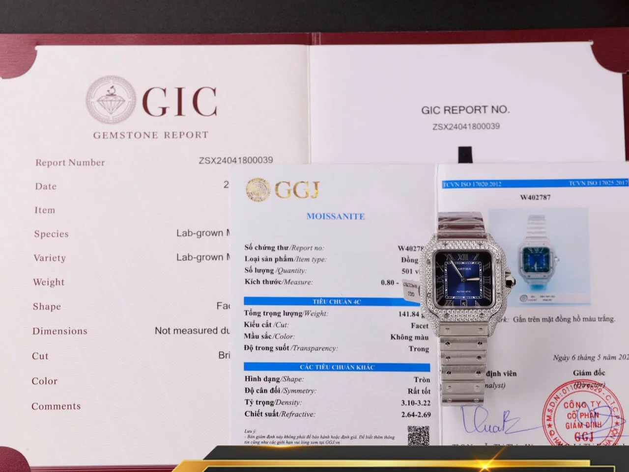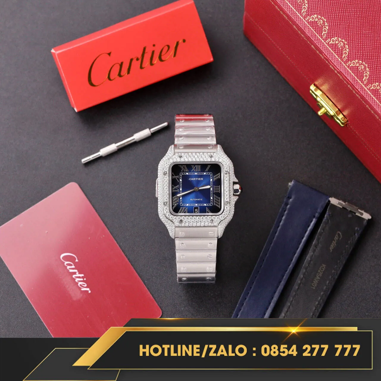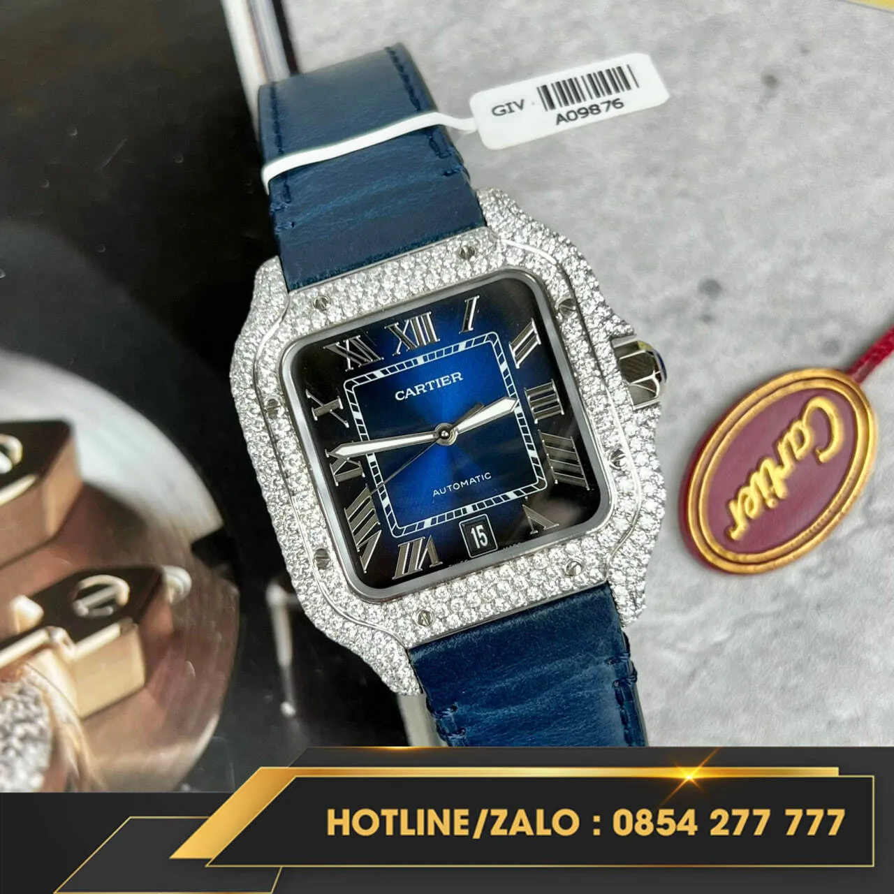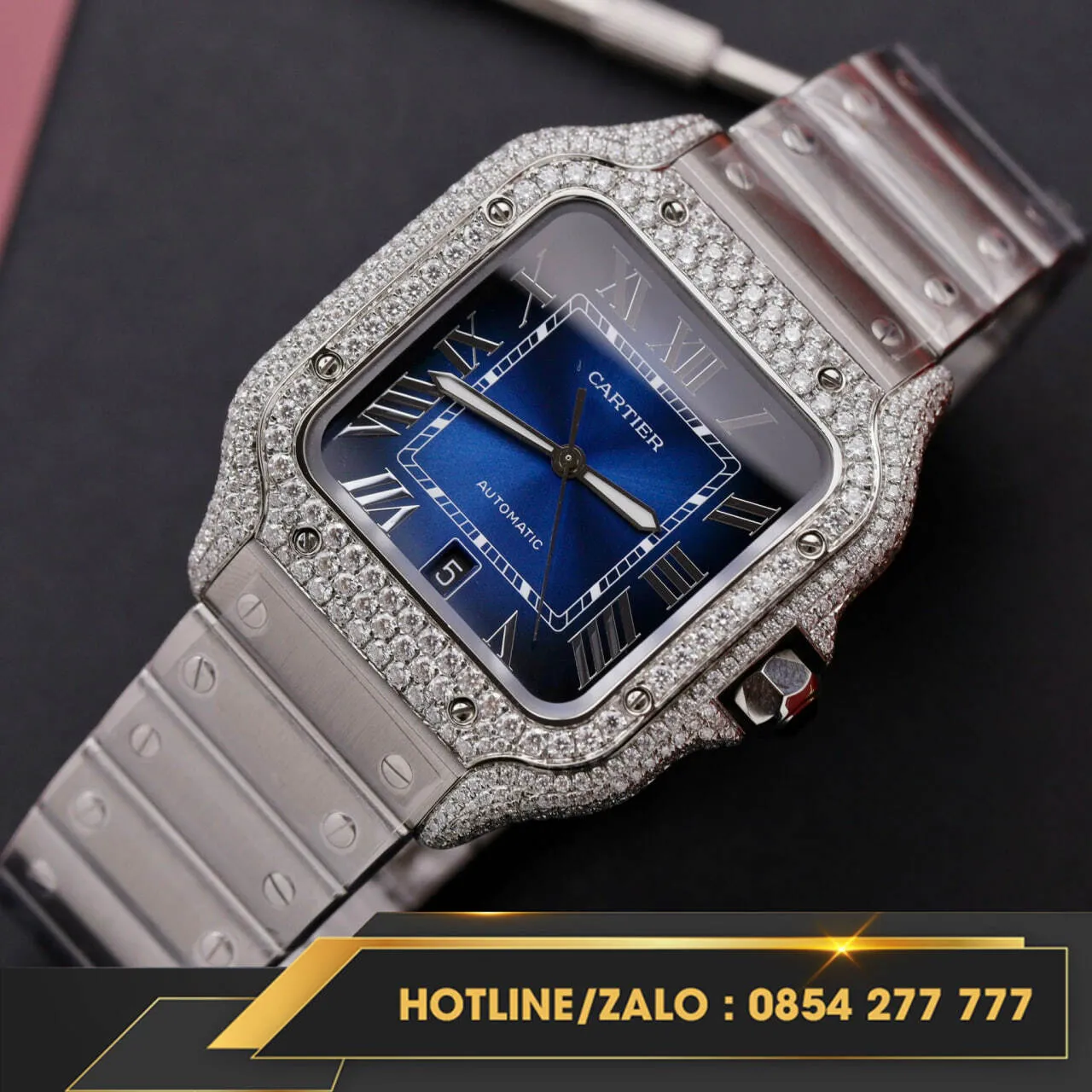 Hiện tại, đồng hồ Cartier Santos Blue Dial viền độ moissanite đang có sẵn tại donghovangkhoi.vn. Liên hệ với chúng tôi ngay hôm nay để sở hữu cho mình chiếc đồng hồ đẳng cấp này.