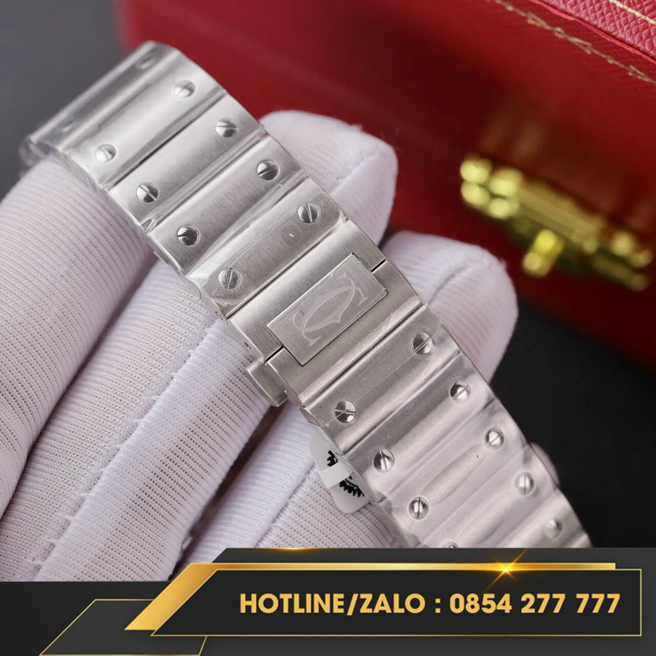 Cartier Santos Blue Dial sử dụng bộ máy cơ automatic, nổi tiếng với độ chính xác cao và bền bỉ. Sự chuyển động mượt mà và ổn định của bộ máy này không chỉ đảm bảo thời gian chính xác mà còn mang lại trải nghiệm thú vị cho người đeo. Kết hợp với chất liệu kính sapphire, chiếc đồng hồ này không chỉ là phụ kiện thời trang mà còn là biểu tượng của sự đẳng cấp và phong cách.