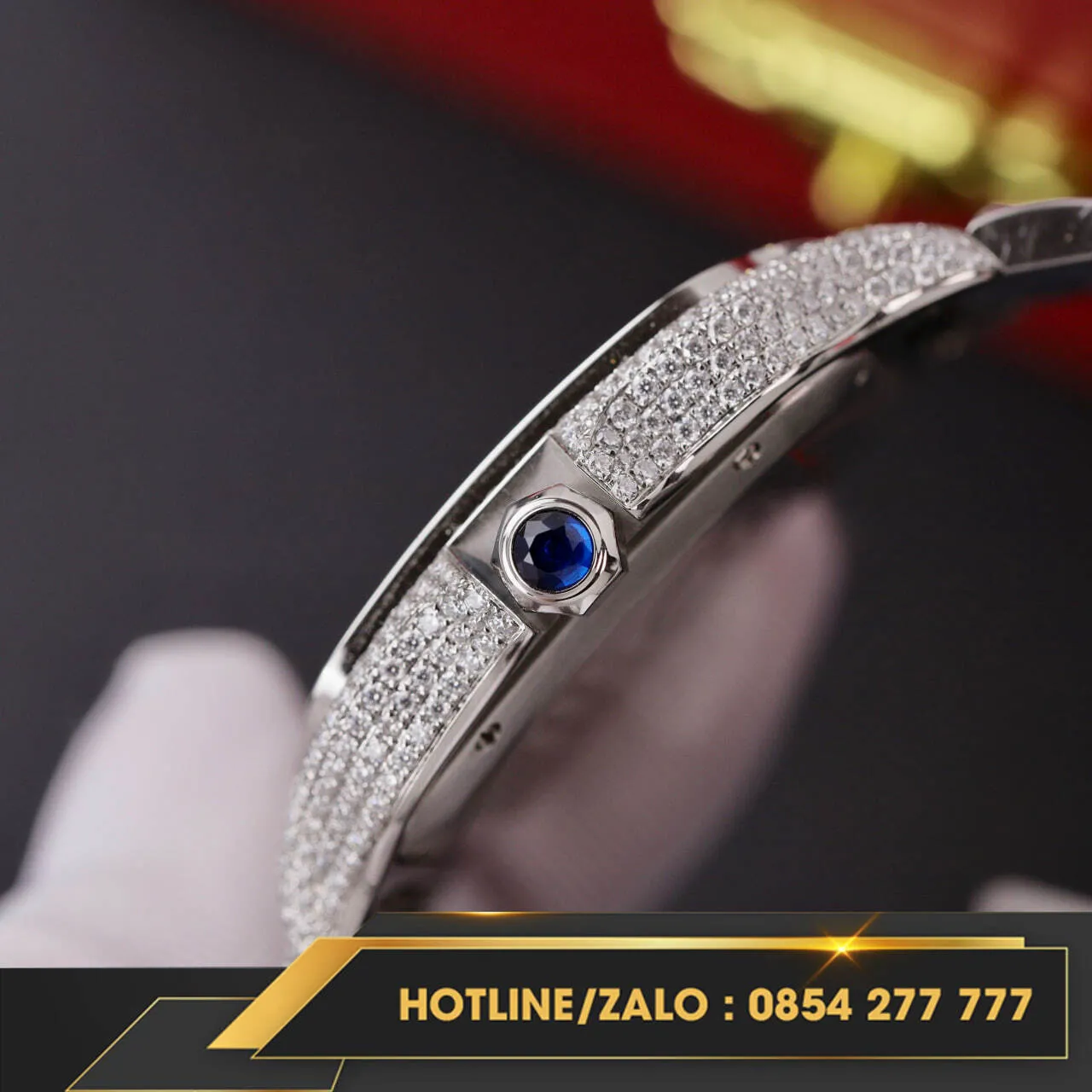 Chiếc Cartier Santos Blue Dial viền độ moissanite này là phiên bản 1:1 chuẩn AU từ nhà máy BV, một trong những nhà máy nổi tiếng về chất lượng và độ hoàn thiện cao. Với chế tác full kim moissanite, đồng hồ không chỉ thể hiện sự tinh xảo mà còn tôn vinh giá trị thẩm mỹ cao cấp. Đây là lựa chọn lý tưởng cho những ai yêu thích sự hoàn hảo và muốn khẳng định phong cách cá nhân thông qua một chiếc đồng hồ đẳng cấp.