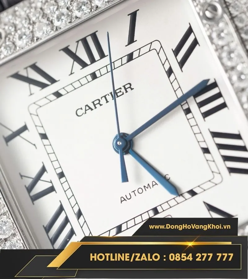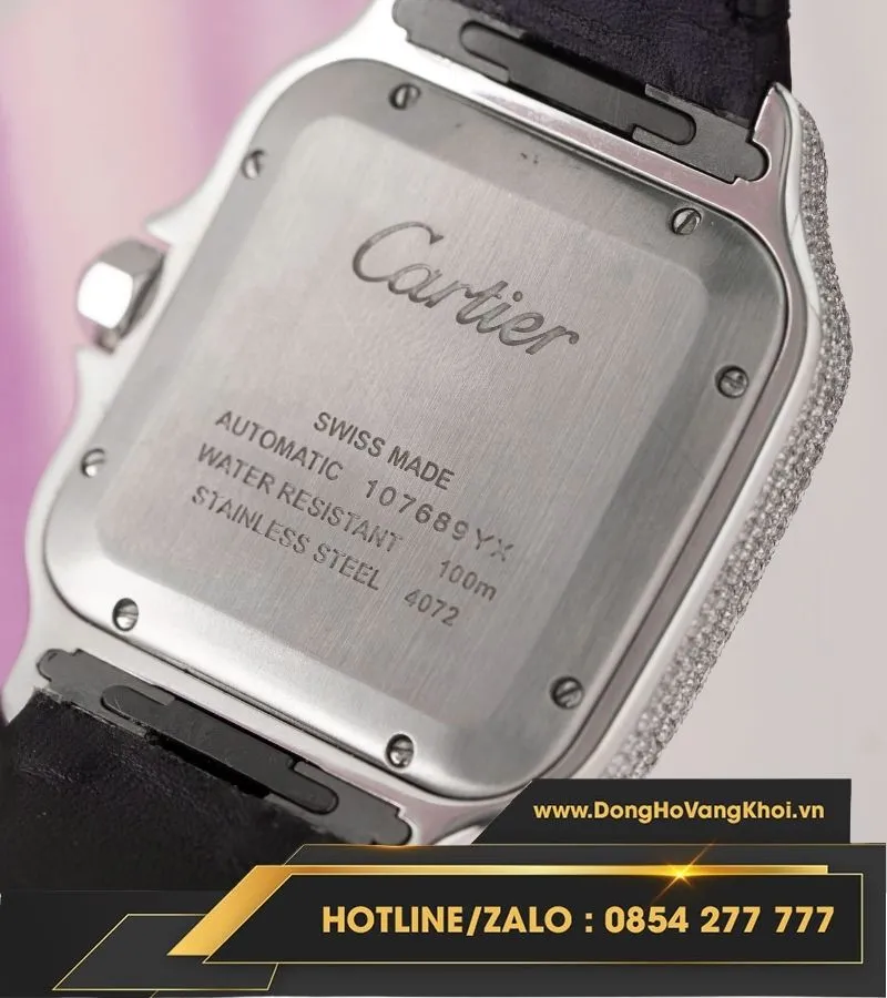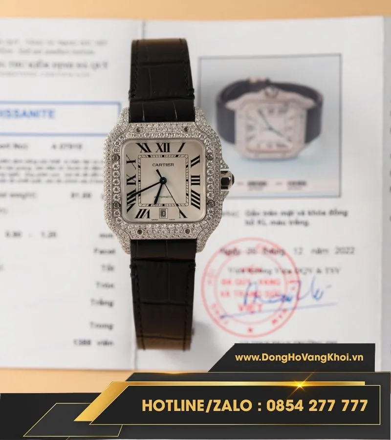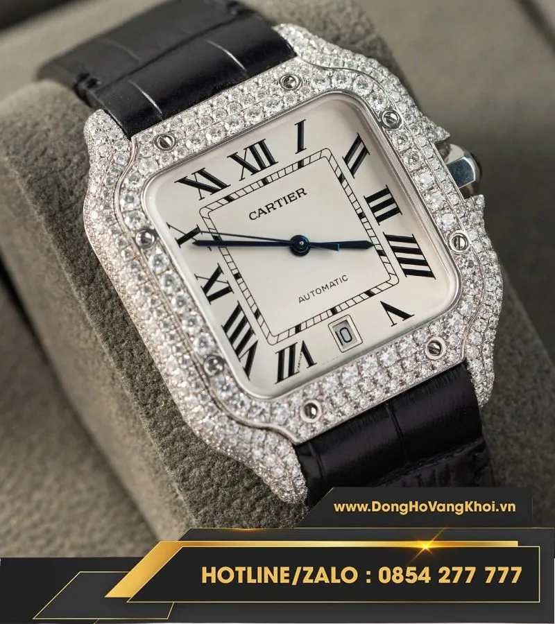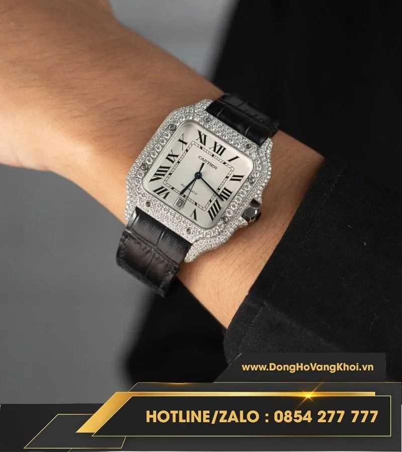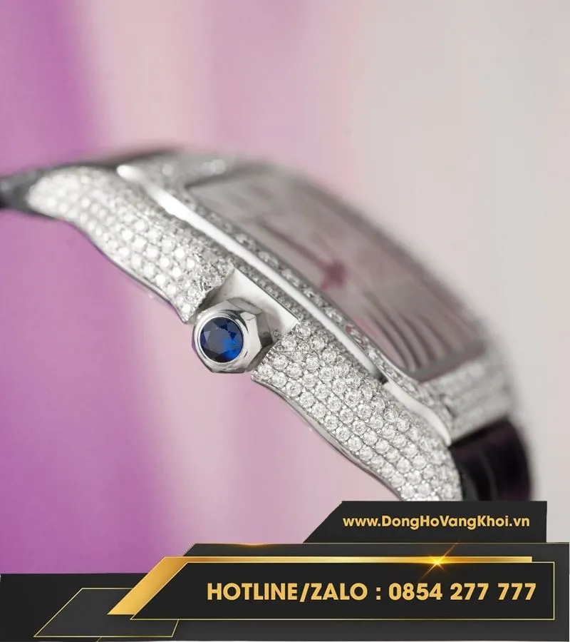 Full thân vỏ và khoá được đính full moissanite tuyển chọn tại hongkong - quy cách đính tinh xảo, chấu kim nhỏ. Máy Myota 9015. Thân vỏ thép 316L. phiên bản dial trắng cọc la mã, bộ kim chính là kim nung xanh. Đủ công năng thay dây nhanh và cắt mắt dây nhanh giống phiên bản xịn. Kính shaphire nguyên khối với hiệu ứng bong bóng xếp chồng.