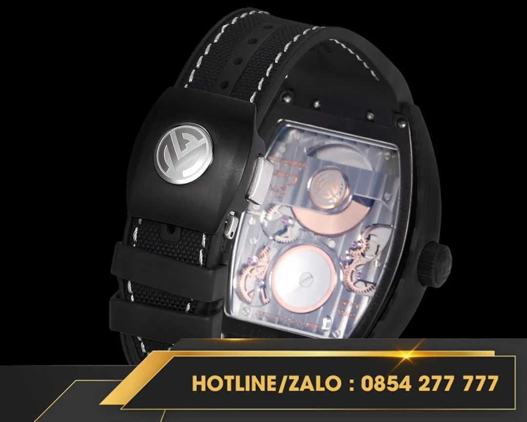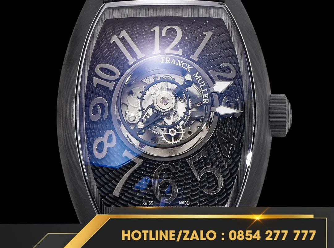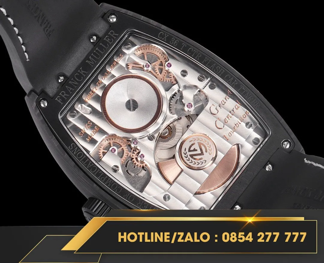 Đồng hồ Franck Muller replica "Grand Central Tourbillon"mới ra mắt với thiết kế độc đáo, mang đến sự khác biệt vượt trội. Cấu trúc "tourbillon trung tâm" khiến tourbillon trở thành tâm điểm trực quan trên mặt số, với chuyển động quay chậm mê hoặc. Mặt số sơn mài được trang bị các chữ số Ả Rập cỡ lớn, cùng họa tiết guilloché dập nổi tỏa ra từ trong ra ngoài, tạo nên hoa văn xoắn ốc phản ánh sự chuyển động tinh tế của tourbillon.