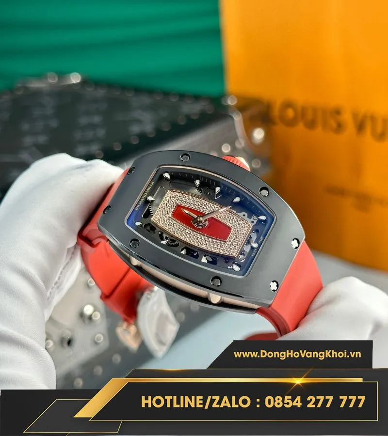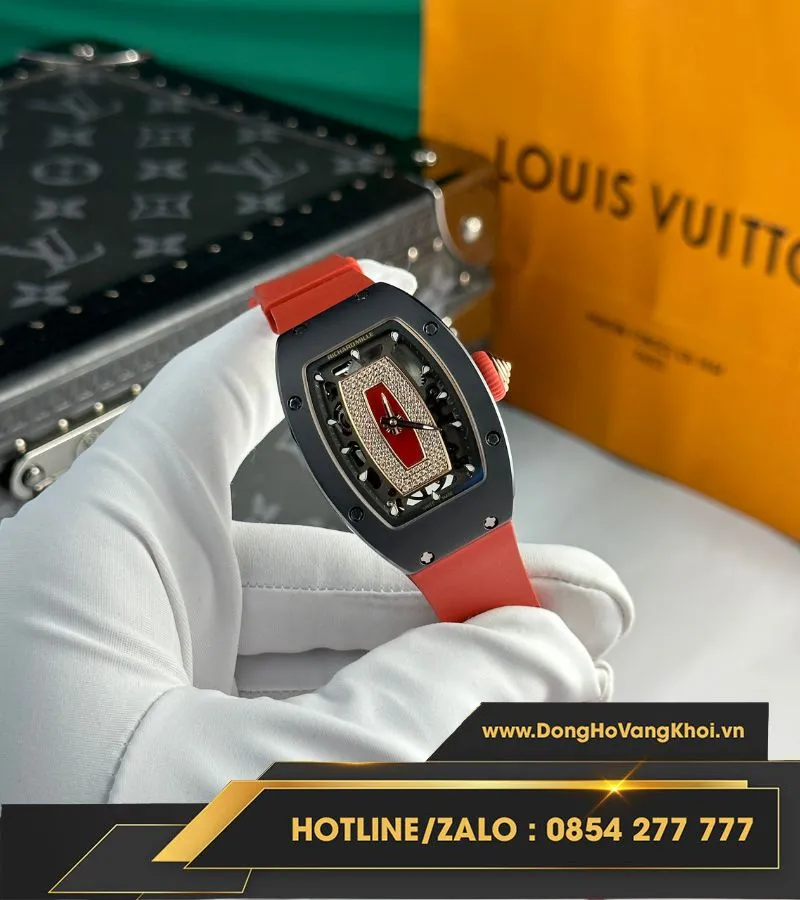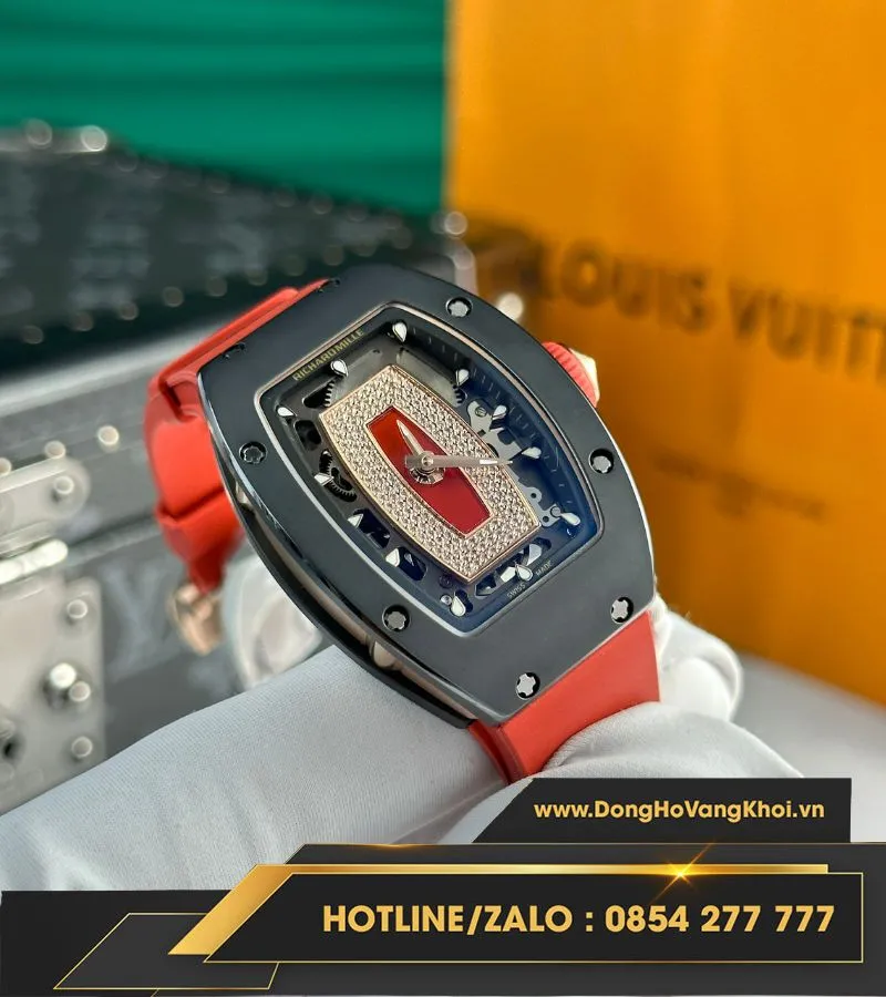 Đồng hồ nữ Richard mille RM 07-01 black ceramic red strap replcia