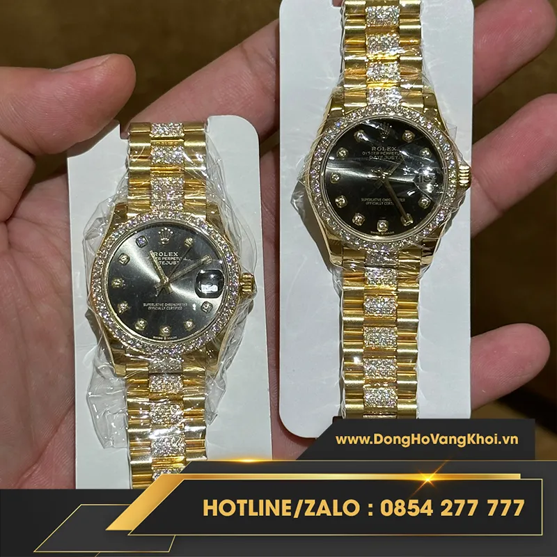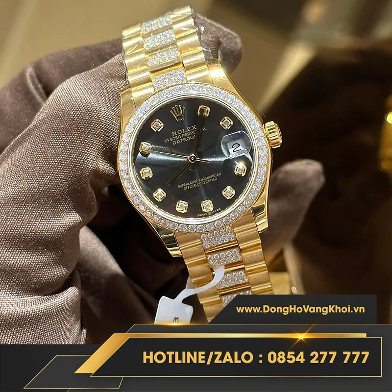 Đồng hồ nữ rolex datejust bọc vàng độ kim moissanitte