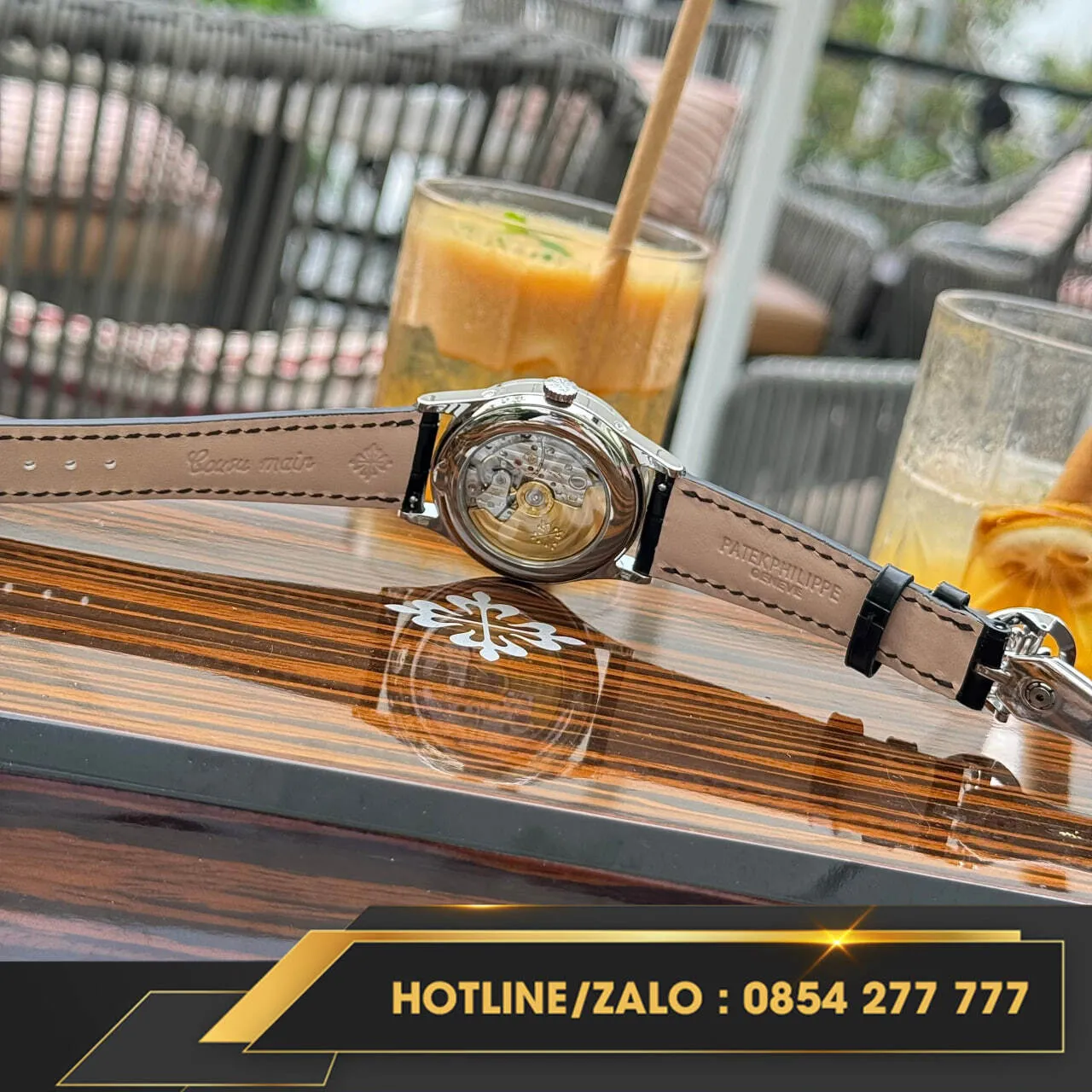 Một trong những điểm nổi bật của đồng hồ Patek Philippe 5396 là khóa hoa thị Calatrava, mang đến sự tiện lợi và thẩm mỹ đặc biệt cho chiếc đồng hồ. Khóa này không chỉ dễ sử dụng mà còn tăng tính tiện ích cho người đeo, làm nổi bật thêm vẻ đẹp và tính chuyên nghiệp của sản phẩm.