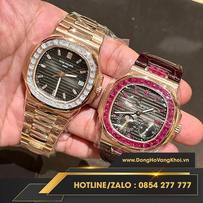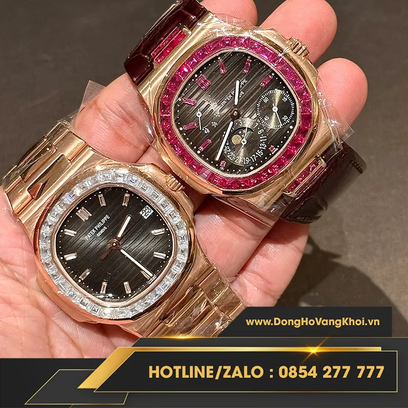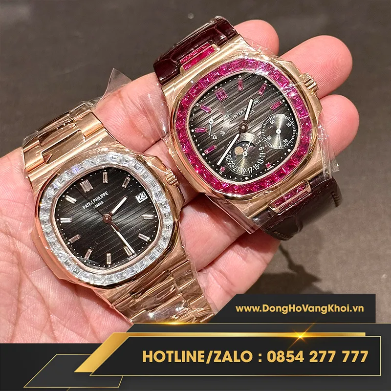 Đồng hồ patek philippe bọc vàng 18k độ kim moissanite