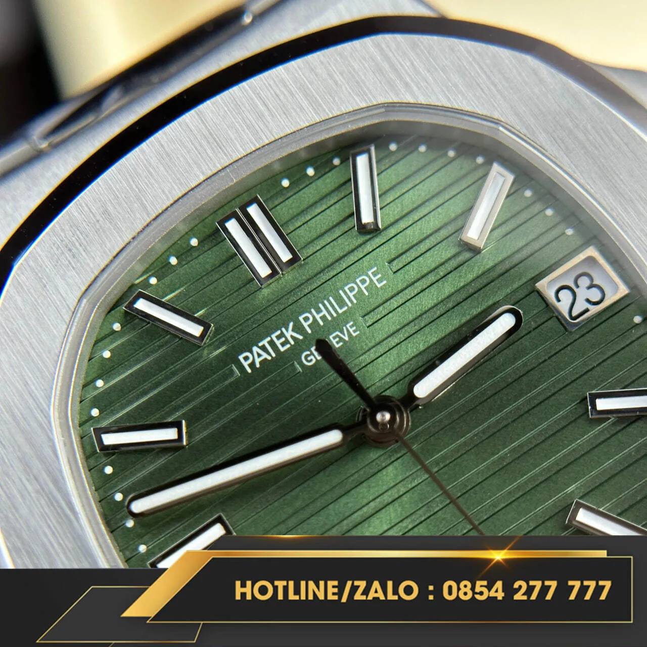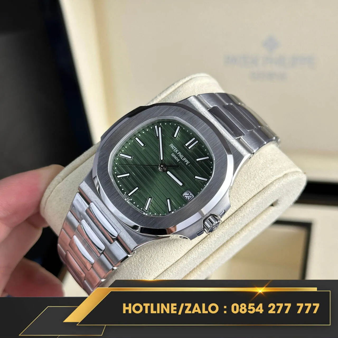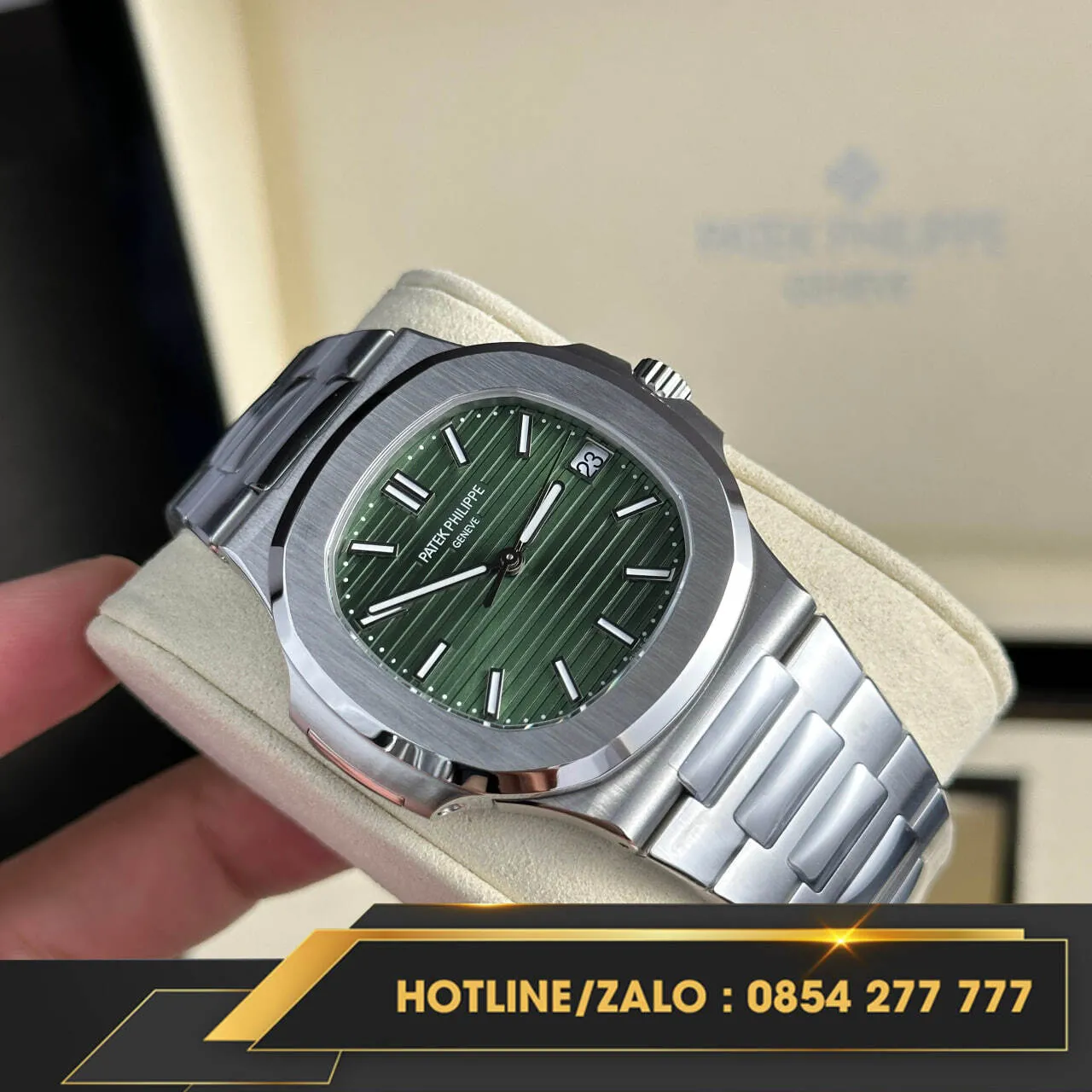 Đồng hồ Patek Philippe Nautilus 5711 mặt xanh olive fake, size 40mm, được sản xuất bởi 3K Factory với máy cal324sc super clone, là một kiệt tác mang vẻ đẹp tinh tế và sang trọng. Mặt số màu xanh olive đặc trưng không chỉ tạo điểm nhấn độc đáo mà còn thể hiện sự đẳng cấp và gu thẩm mỹ cao của người đeo.
