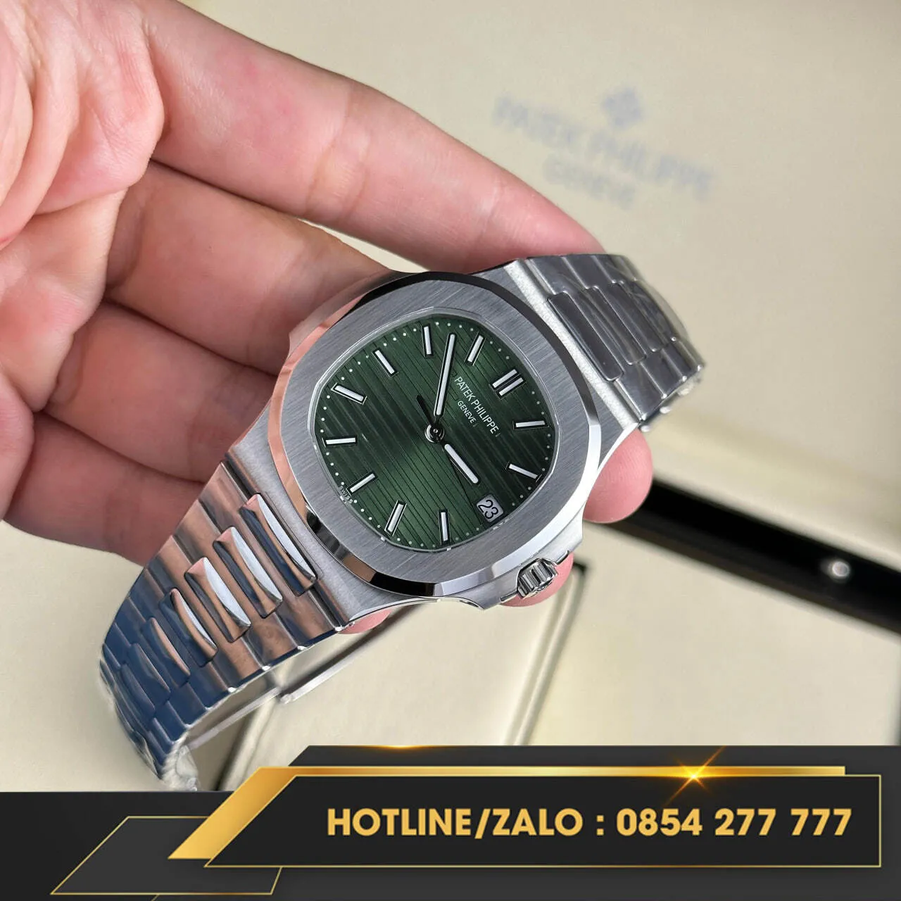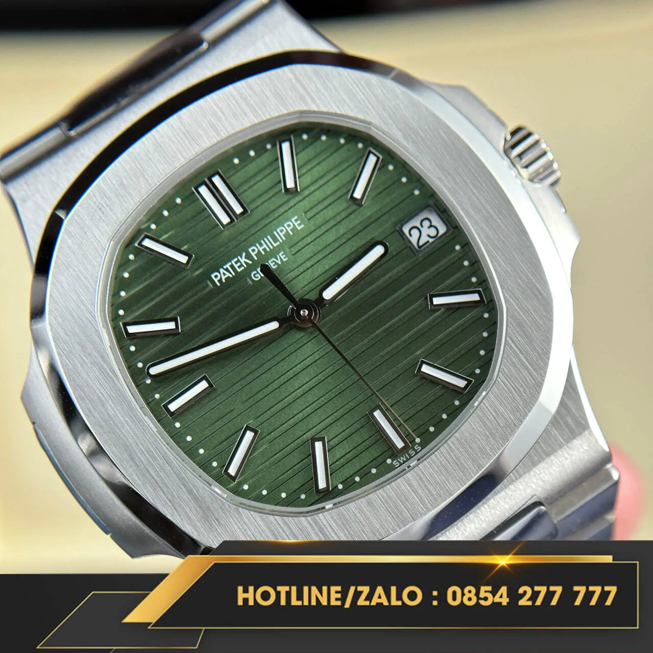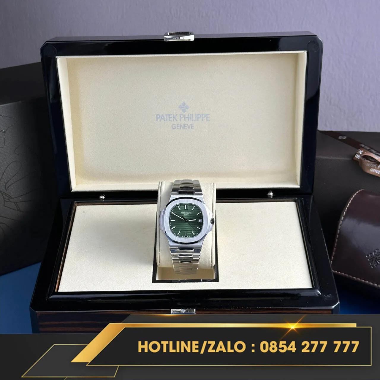 Đồng hồ Patek Philippe Nautilus 5711 mặt xanh olive fake, size 40mm, được sản xuất bởi 3K Factory với máy cal324sc super clone, là một kiệt tác mang vẻ đẹp tinh tế và sang trọng. Mặt số màu xanh olive đặc trưng không chỉ tạo điểm nhấn độc đáo mà còn thể hiện sự đẳng cấp và gu thẩm mỹ cao của người đeo.