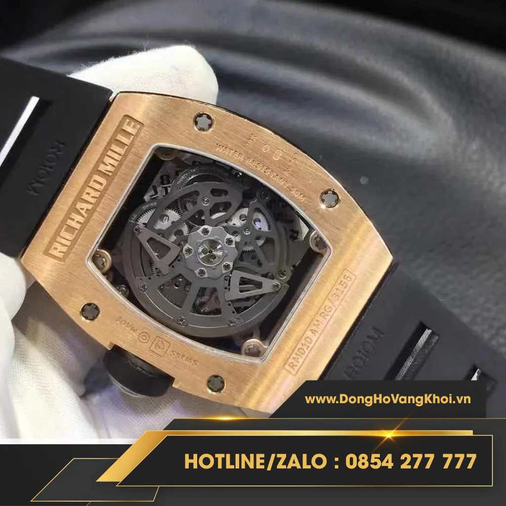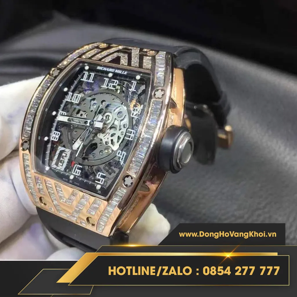 Đồng hồ RICHARD MILLE RM010 18K ROSE GOLD BAGUETTE DIAMONDS chế tác vàng khối, kim cương thiên nhiên