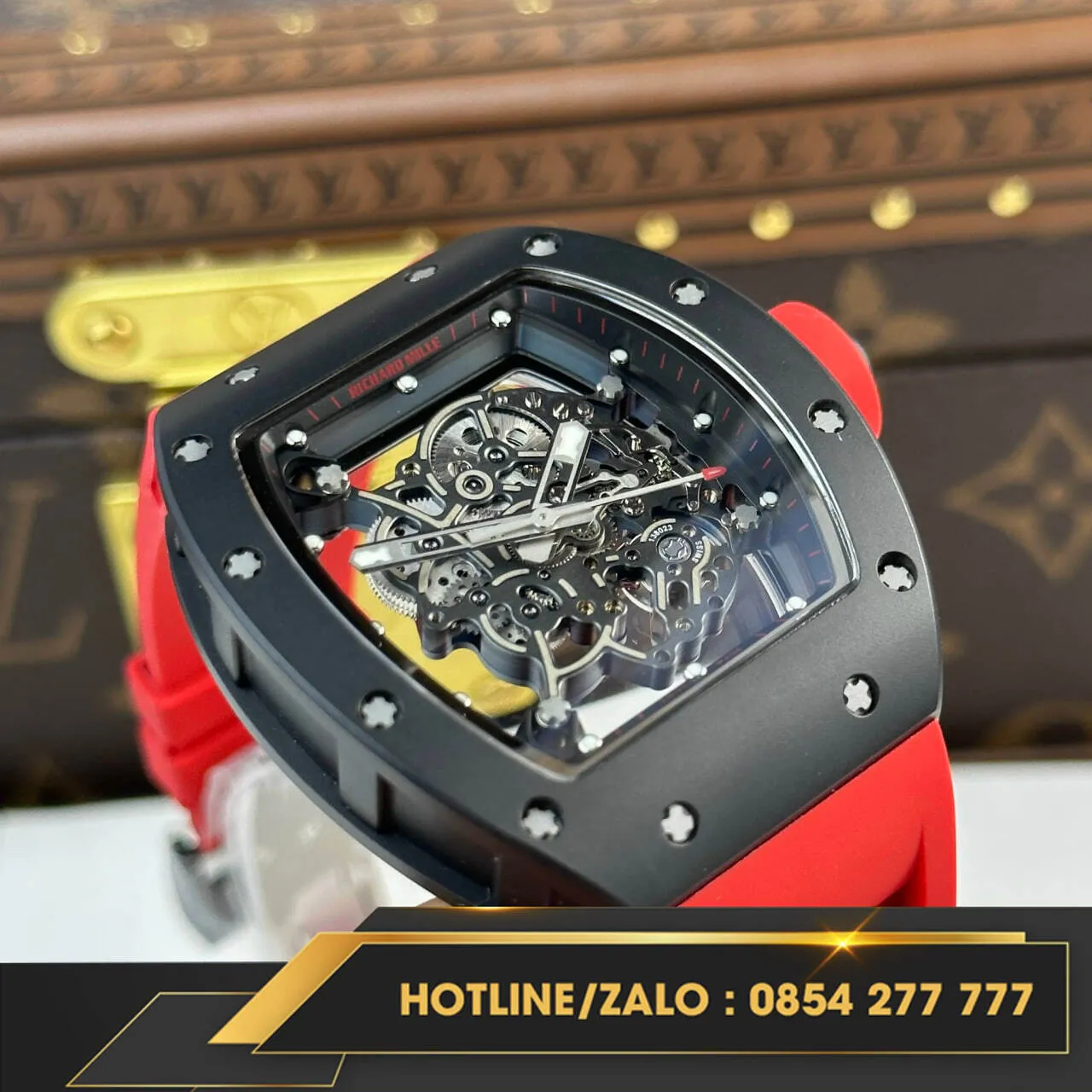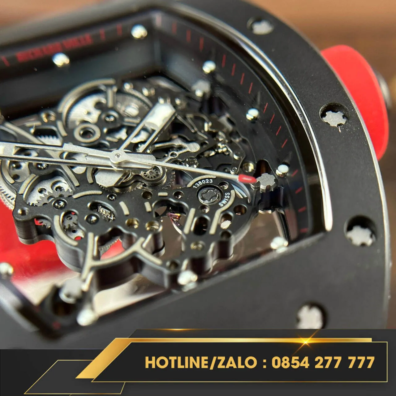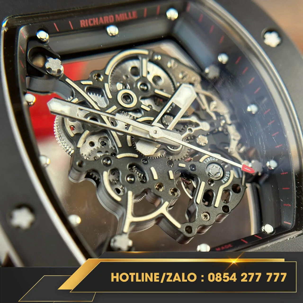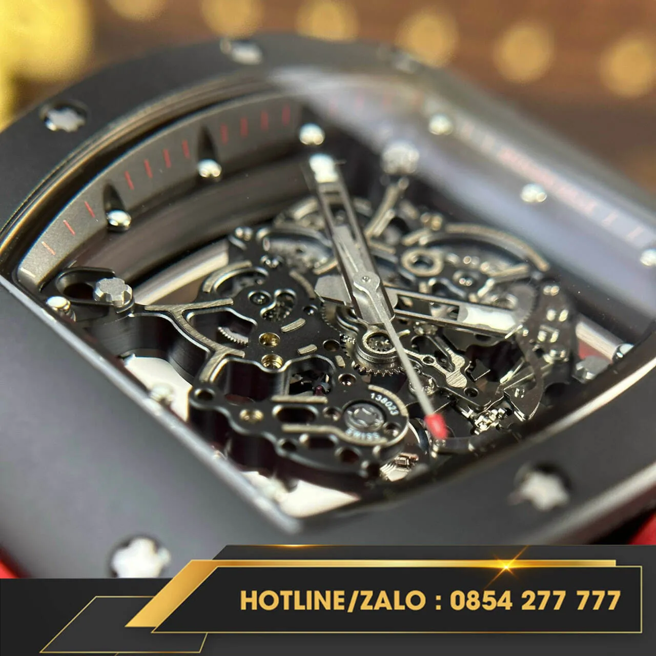 Đồng hồ RM055 Bubba Watson ceramic replica trang bị bộ máy cơ tự động với công nghệ tiên tiến, mang lại độ chính xác cao và hiệu suất bền bỉ. Phiên bản V3 vừa ra mắt từ nhà máy BBR có độ hoàn thiện vượt trội hơn so với các phiên bản trước, đảm bảo sự mượt mà trong vận hành và độ tin cậy tuyệt đối. Khả năng dự trữ năng lượng lên đến 55 giờ giúp người dùng an tâm sử dụng trong thời gian dài mà không lo ngại về việc lên dây cót thường xuyên.