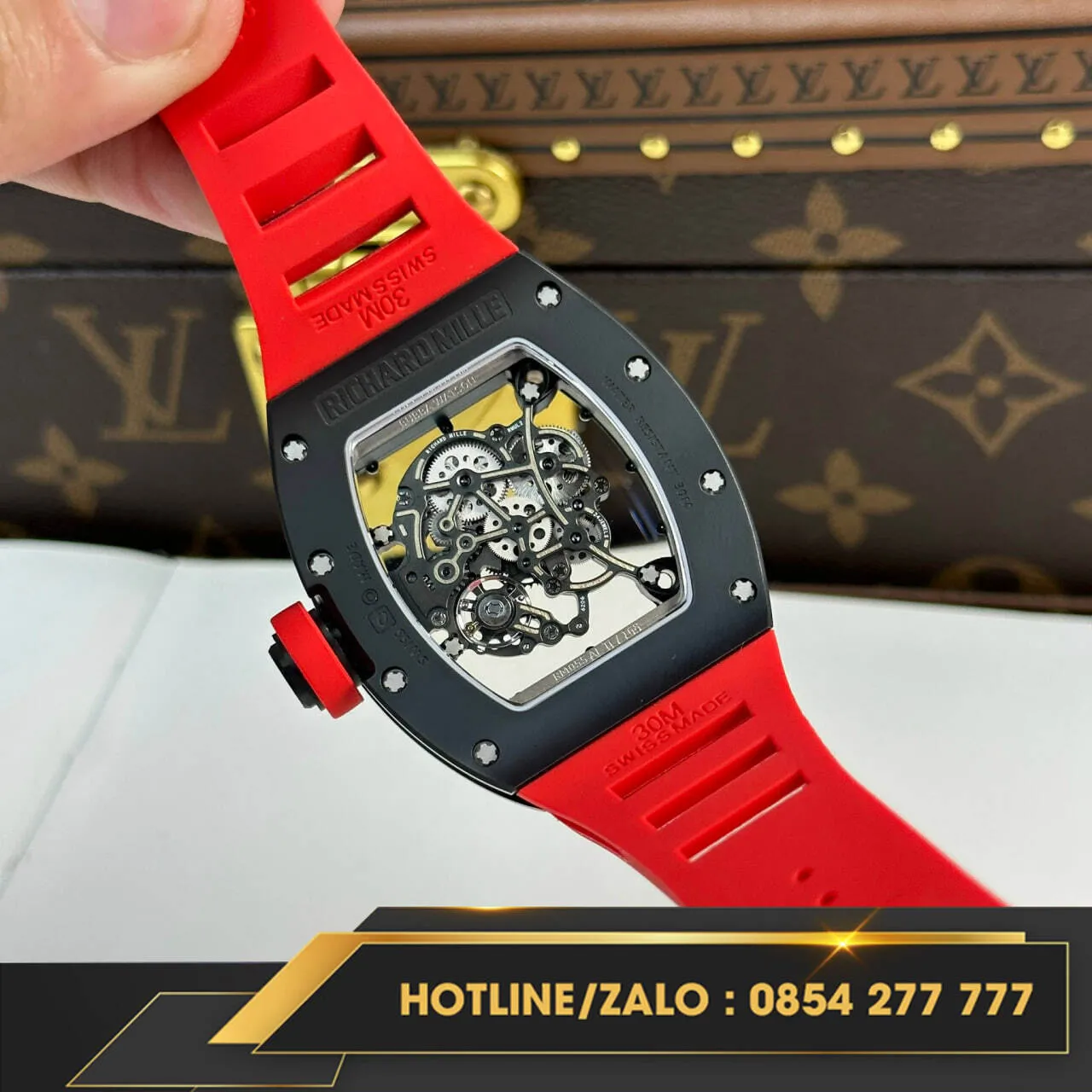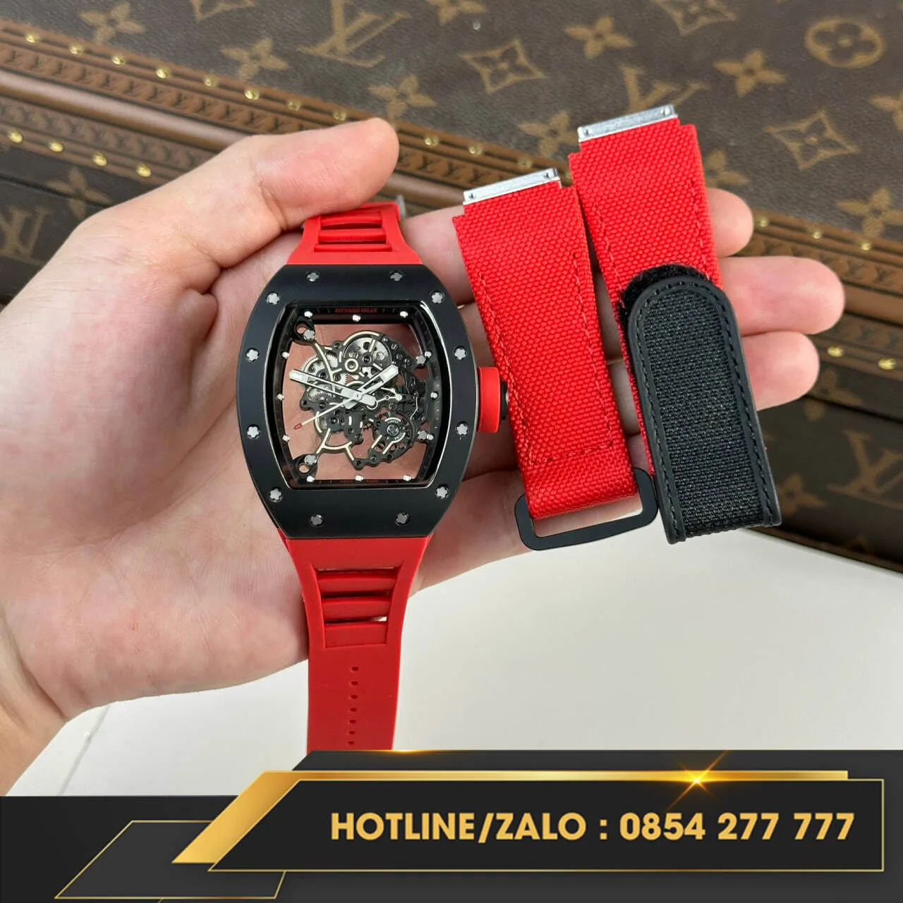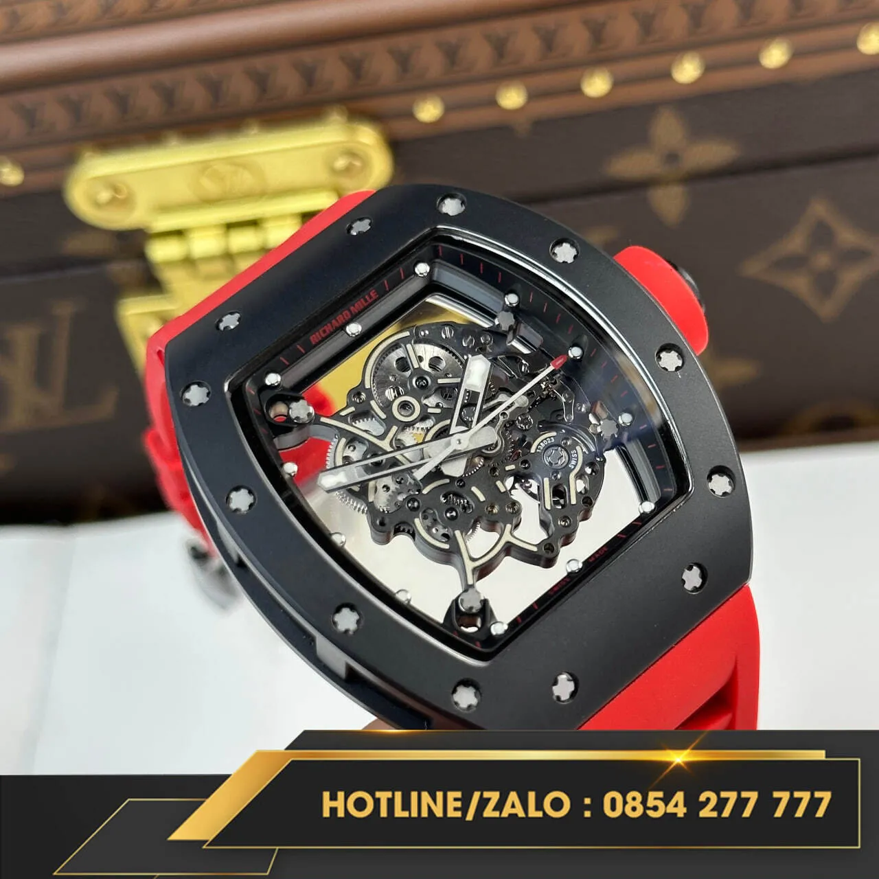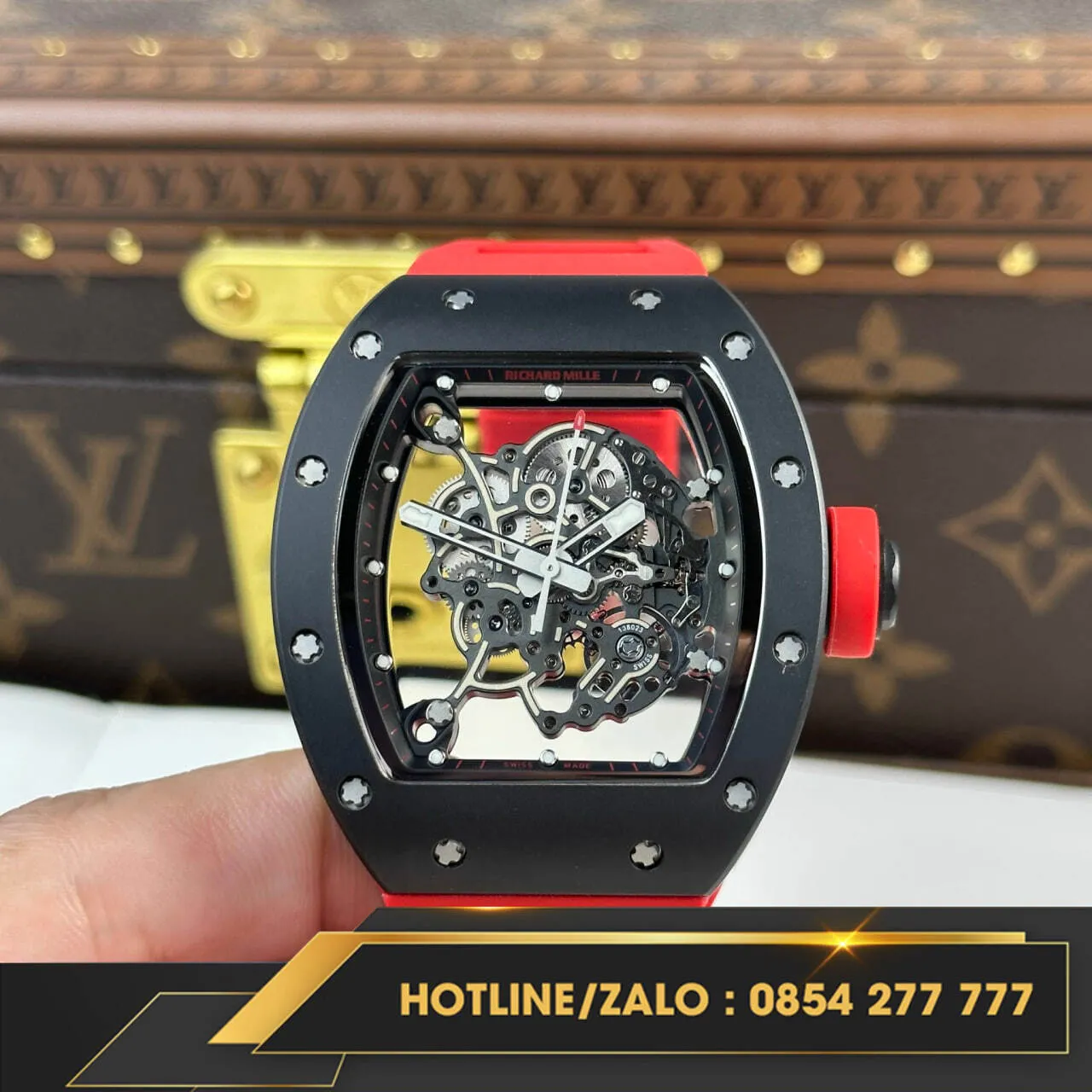 Đồng hồ RM055 Bubba Watson ceramic replica trang bị bộ máy cơ tự động với công nghệ tiên tiến, mang lại độ chính xác cao và hiệu suất bền bỉ. Phiên bản V3 vừa ra mắt từ nhà máy BBR có độ hoàn thiện vượt trội hơn so với các phiên bản trước, đảm bảo sự mượt mà trong vận hành và độ tin cậy tuyệt đối. Khả năng dự trữ năng lượng lên đến 55 giờ giúp người dùng an tâm sử dụng trong thời gian dài mà không lo ngại về việc lên dây cót thường xuyên.