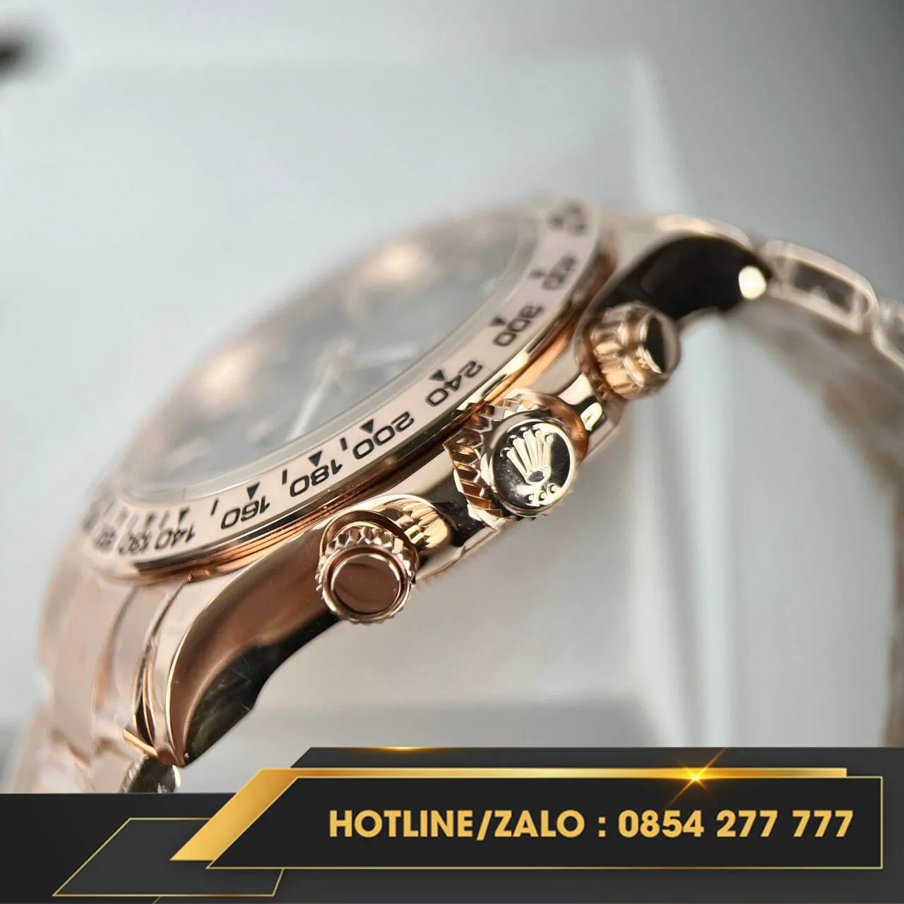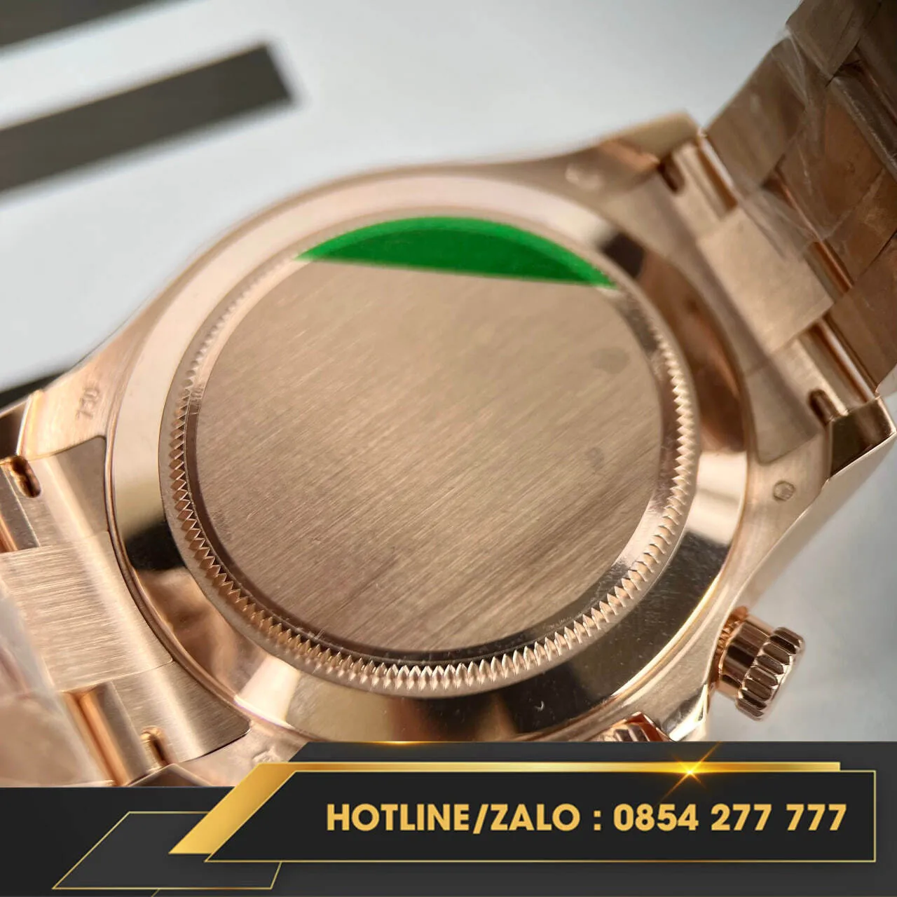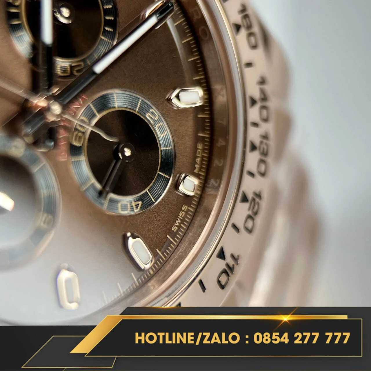 Đồng hồ Rolex Replica Cosmograph Daytona 116505 Chocolate Dial bọc vàng 18k mang đến vẻ đẹp sang trọng và đẳng cấp không thể chối từ. Mặt số màu chocolate kết hợp với vỏ và dây đeo bọc vàng 18k tạo nên một tổng thể hoàn hảo, vừa lịch lãm vừa nổi bật.