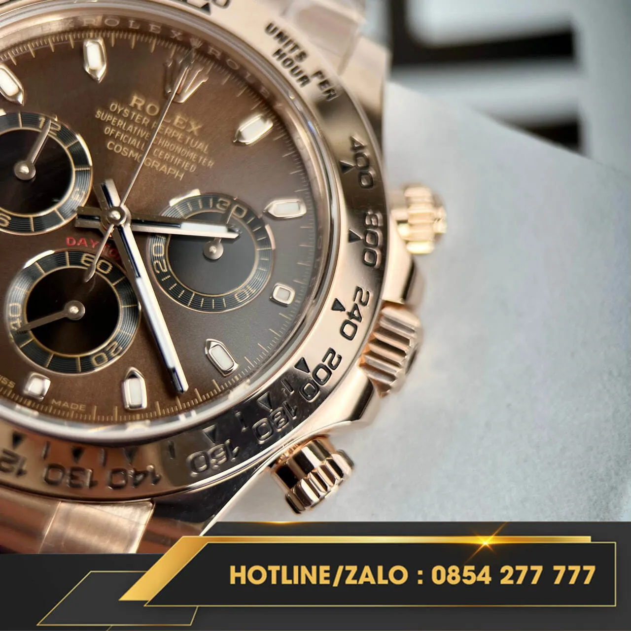 Hiện tại, đồng hồ Rolex Cosmograph Daytona 116505 Chocolate Dial bọc vàng 18k đang có sẵn tại donghovangkhoi.vn. Liên hệ với chúng tôi ngay hôm nay để sở hữu cho mình chiếc đồng hồ đẳng cấp này.