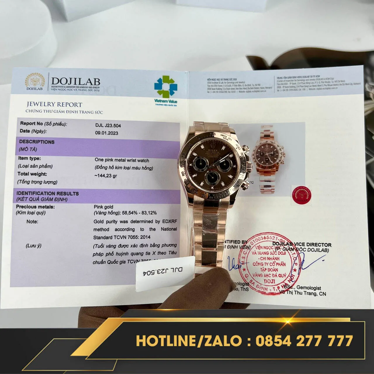 Rolex luôn là biểu tượng của sự hoàn hảo và đẳng cấp trong ngành đồng hồ. Rolex Cosmograph Daytona 116505 Chocolate Dial bọc vàng 18k không chỉ là một chiếc đồng hồ, mà còn là một tác phẩm nghệ thuật, thể hiện sự tinh tế và đẳng cấp của thương hiệu. Sản phẩm này đã được kiểm định đầy đủ bởi các tổ chức quốc tế và Việt Nam, đảm bảo chất lượng và uy tín tuyệt đối.