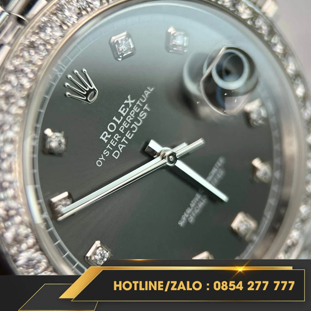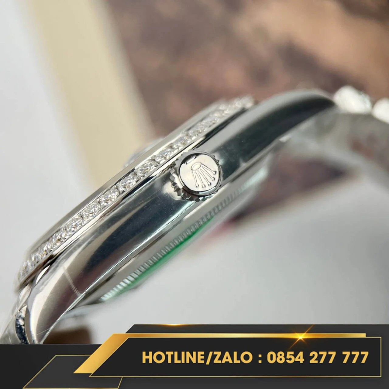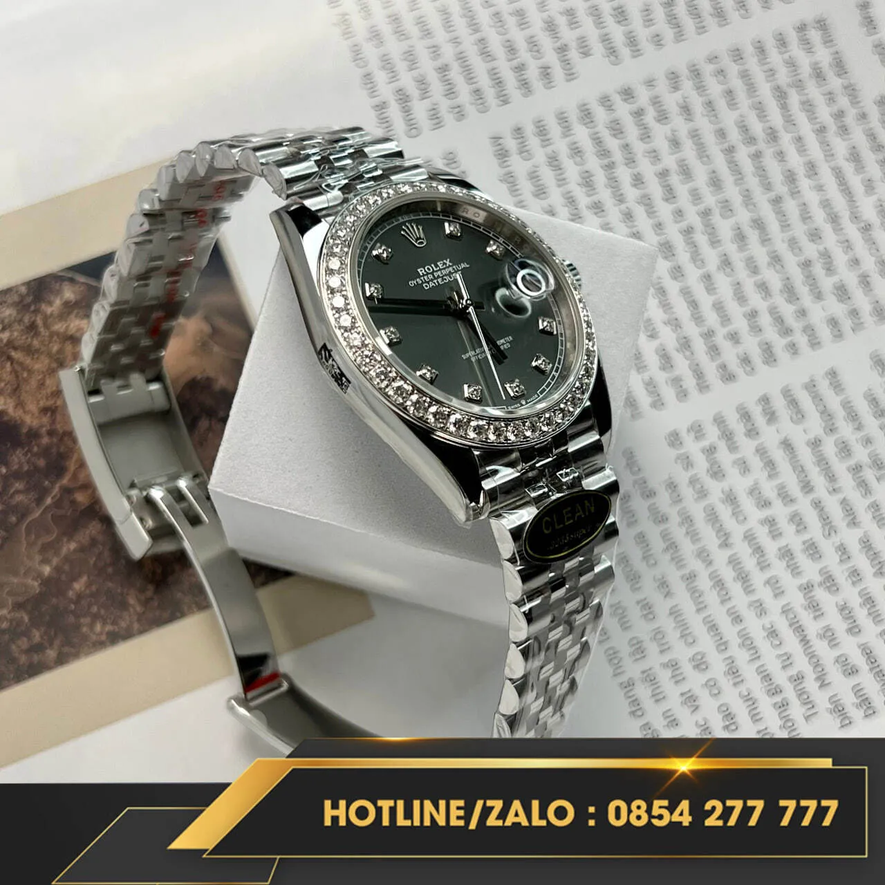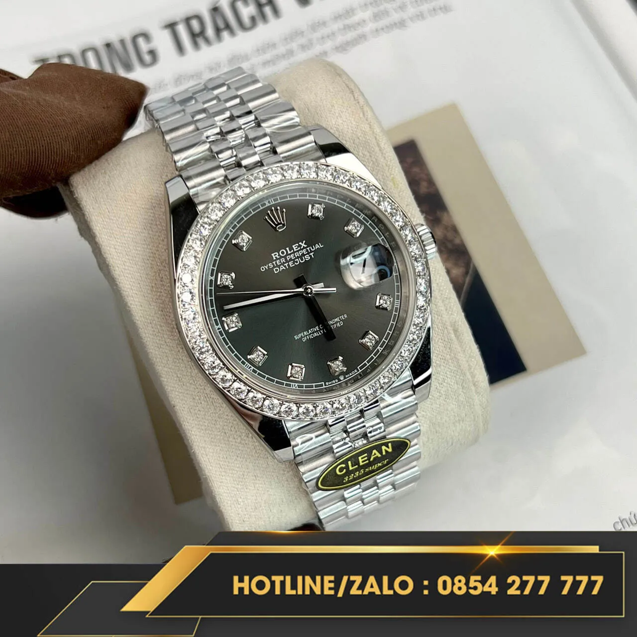 Đồng hồ Rolex replica Datejust 41 126334 mặt đen viền moissanite là một kiệt tác trong thế giới đồng hồ, nổi bật với chất liệu thép không gỉ 904L. Thép 904L được biết đến với độ bền cao và khả năng chống ăn mòn tuyệt vời, mang lại vẻ sáng bóng và sang trọng cho đồng hồ. Phiên bản này được sản xuất bởi nhà máy CLEAN với độ hoàn thiện chất lượng nhất hiện nay, mỗi chi tiết đều được gia công tỉ mỉ để đảm bảo sự hoàn hảo.