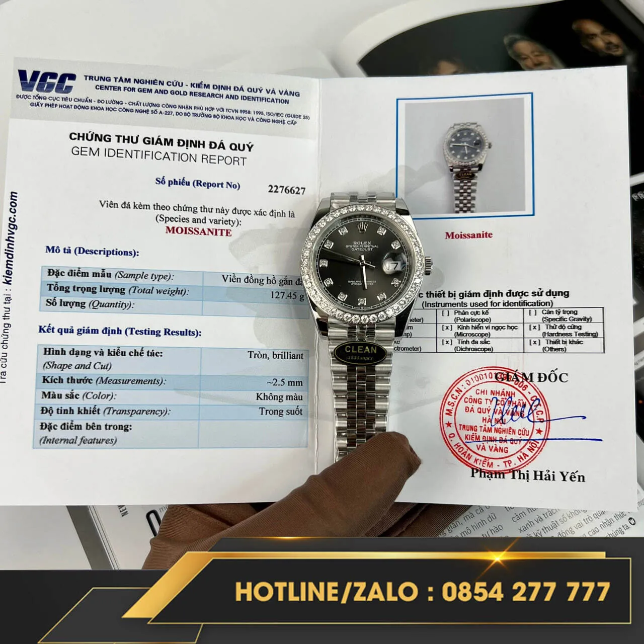 Vành moissanite của phiên bản này được chế tác tinh xảo với những viên đá 2.5 HongKong, tạo nên sự lấp lánh và sang trọng cho đồng hồ. Mặt số đen kết hợp với viền moissanite làm tăng thêm vẻ đẹp quý phái và độc đáo, thu hút mọi ánh nhìn. Thương hiệu Rolex luôn là biểu tượng của sự đẳng cấp và phong cách, và đồng hồ Rolex Datejust 41 126334 mặt đen không chỉ là một phụ kiện thời trang mà còn là biểu tượng của sự thành công và phong cách sống thượng lưu.