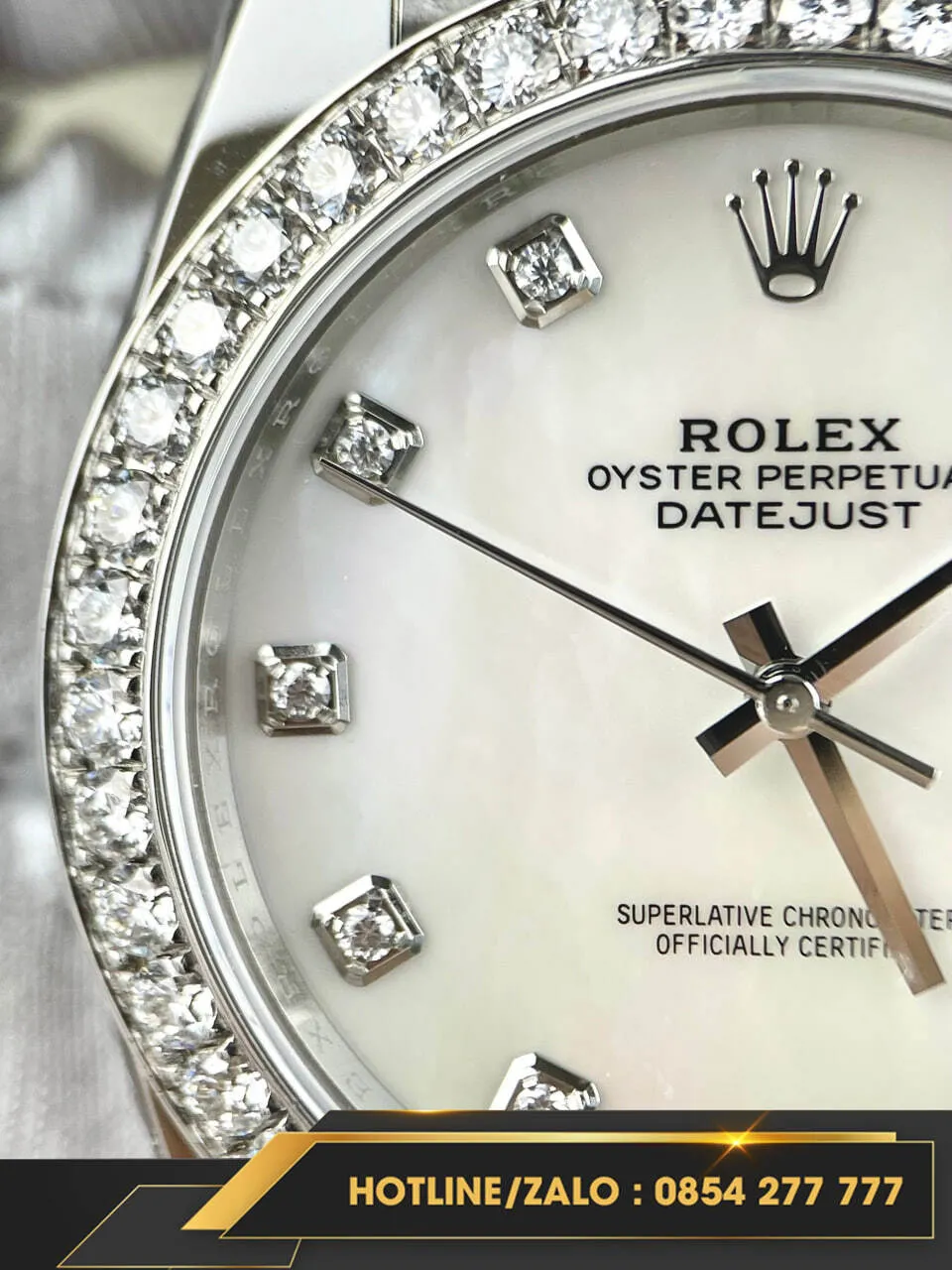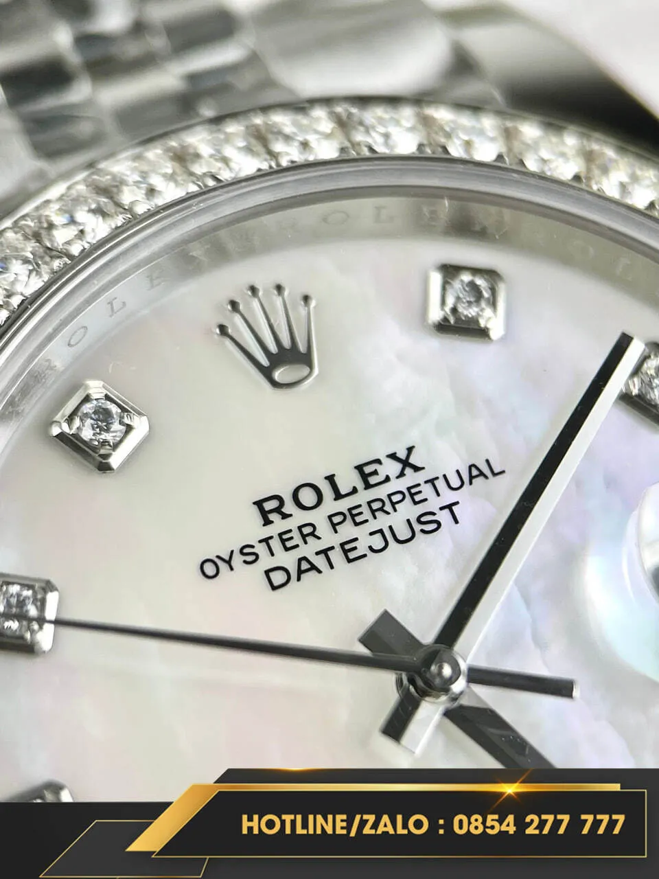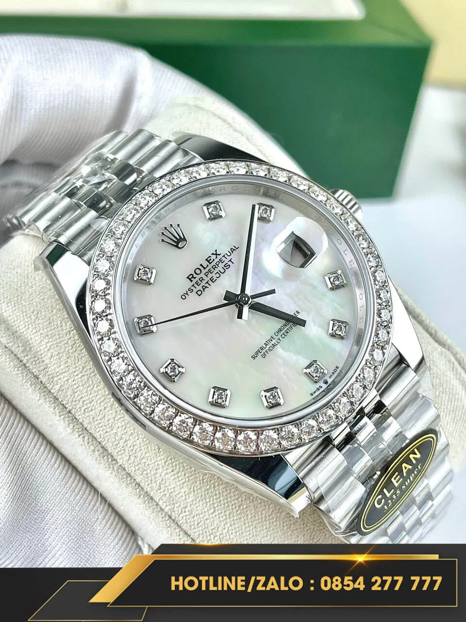 Đồng hồ Rolex replica Datejust 41 mặt MOP (Mother of Pearl) viền moissanite là biểu tượng của sự tinh tế và đẳng cấp trong thế giới đồng hồ. Sử dụng chất liệu thép không gỉ 904L, chiếc đồng hồ này không chỉ nổi bật với độ bền vượt trội mà còn mang lại vẻ sáng bóng hoàn mỹ, thể hiện phong cách thượng lưu và sang trọng. Được sản xuất bởi nhà máy CLEAN, phiên bản này đảm bảo độ hoàn thiện chất lượng cao nhất hiện nay, với từng chi tiết được gia công tỉ mỉ.