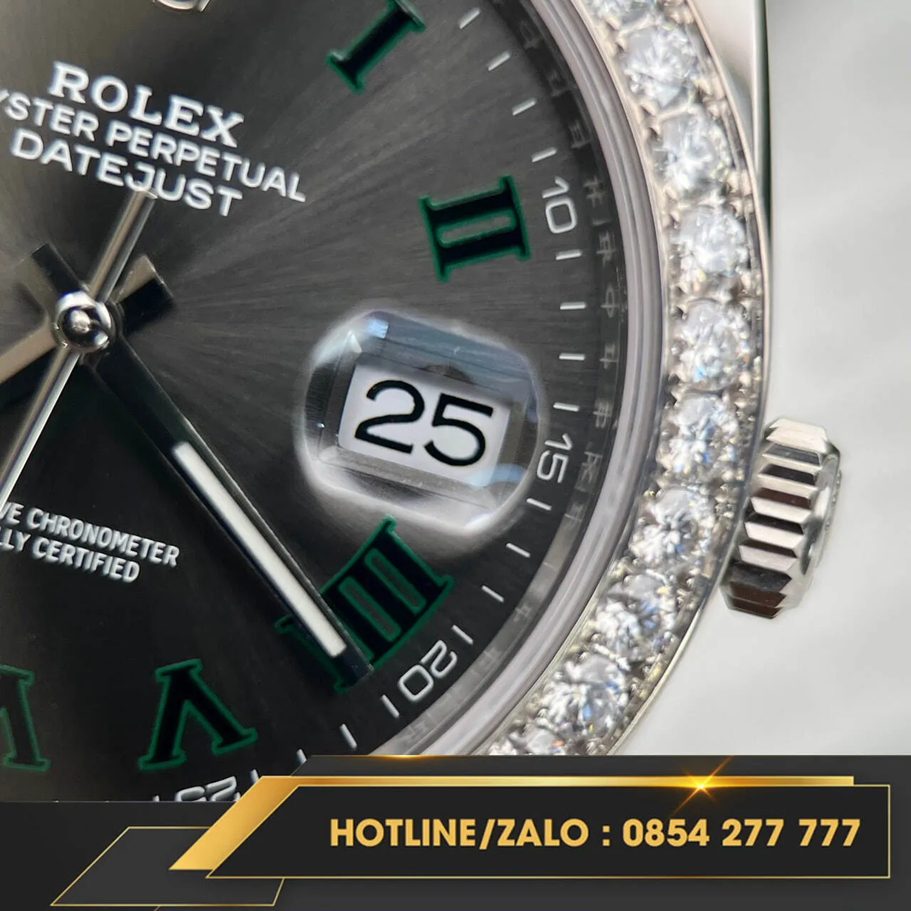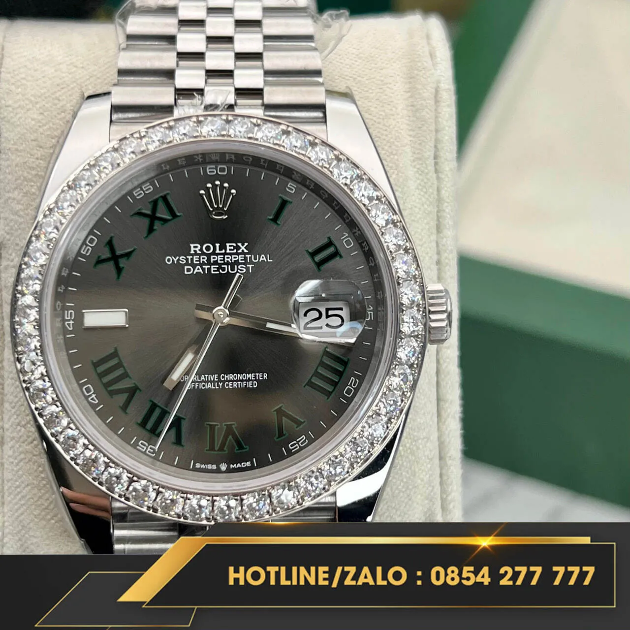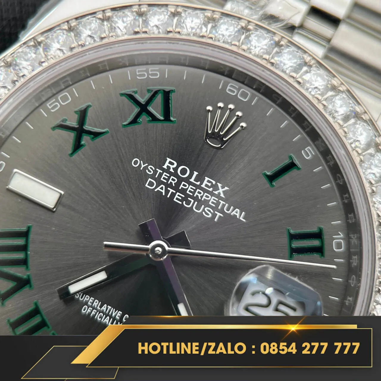 Vành moissanite của phiên bản này được chế tác tinh xảo với những viên đá 2.5 HongKong, tạo nên sự lấp lánh và sang trọng cho đồng hồ. Mặt số Wimbledon kết hợp với viền moissanite làm tăng thêm vẻ đẹp quý phái và độc đáo, thu hút mọi ánh nhìn. Thương hiệu Rolex luôn là biểu tượng của sự đẳng cấp và phong cách, và đồng hồ Rolex Datejust 41 Wimbledon 126334 không chỉ là một phụ kiện thời trang mà còn là biểu tượng của sự thành công và phong cách sống thượng lưu.