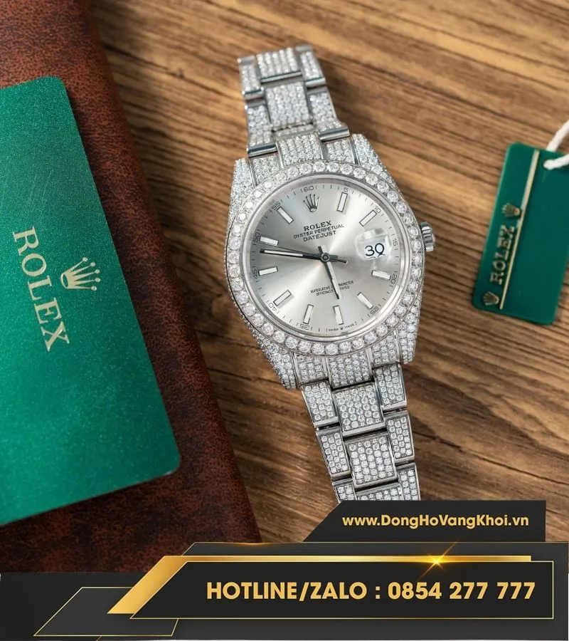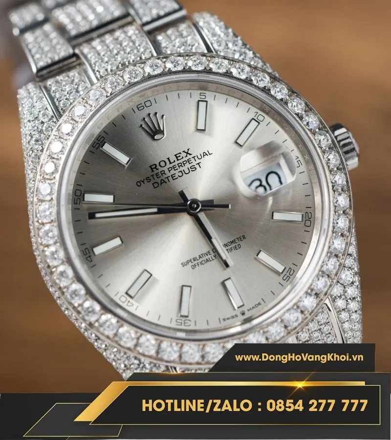 Tham khảo: https://www.donghovangkhoi.vn/dong-ho-rolex-datejust-41mm-126334-full-moissanite.html