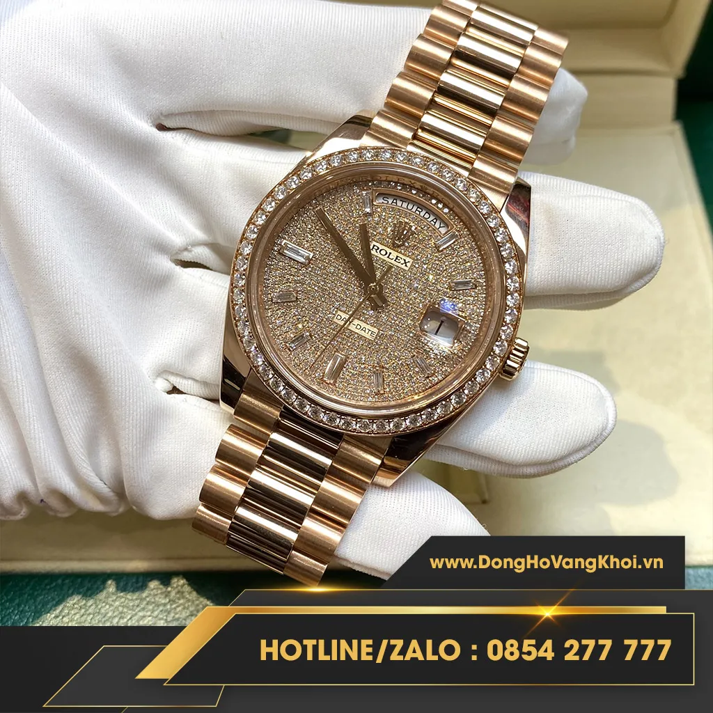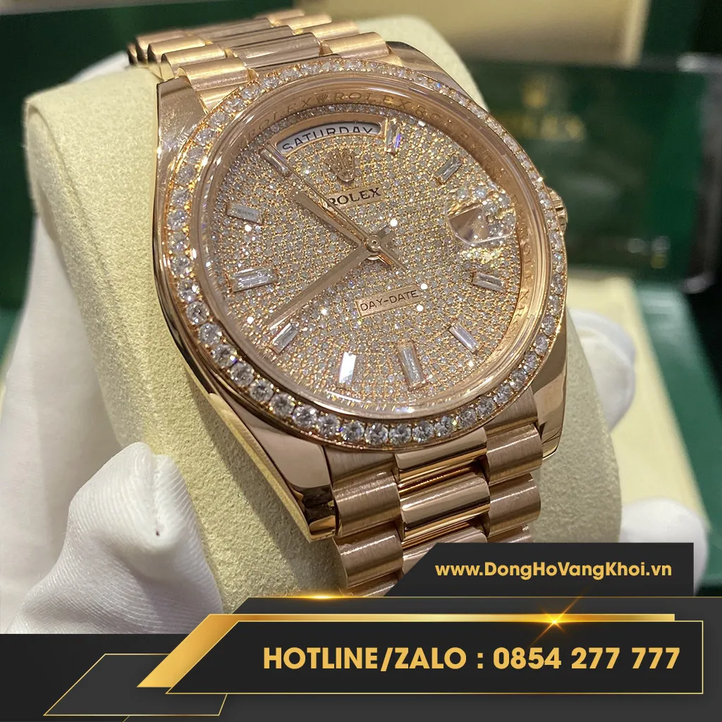 Đồng hồ Rolex Day-Date 228345 40mm chế tác vàng khối 18k, kim cương thiên nhiên