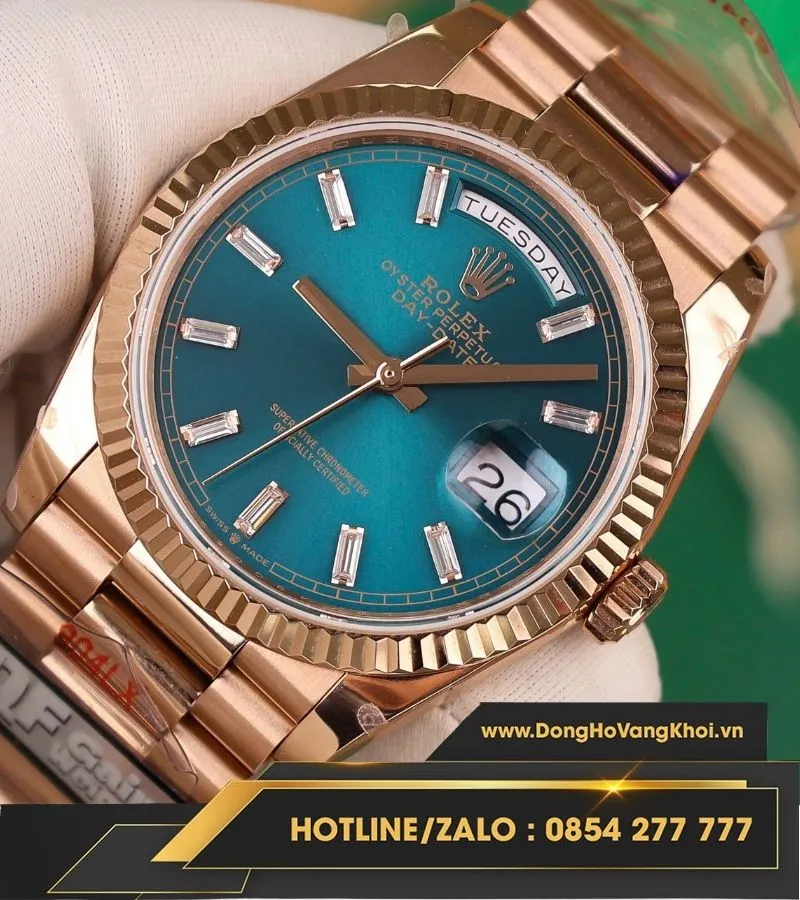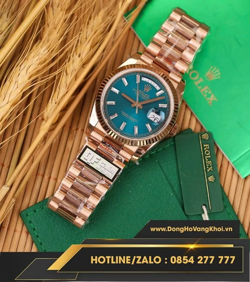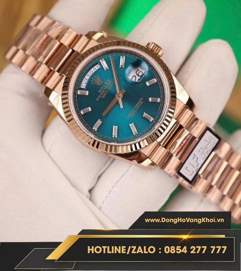 Đồng hồ Rolex Day-Date 36mm 128235 vàng hồng mặt số lá cây nhiệt đới 158g fake