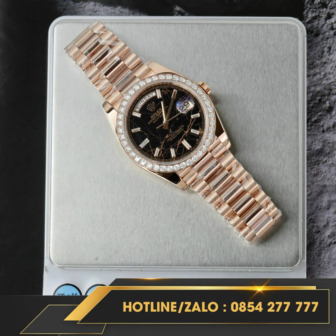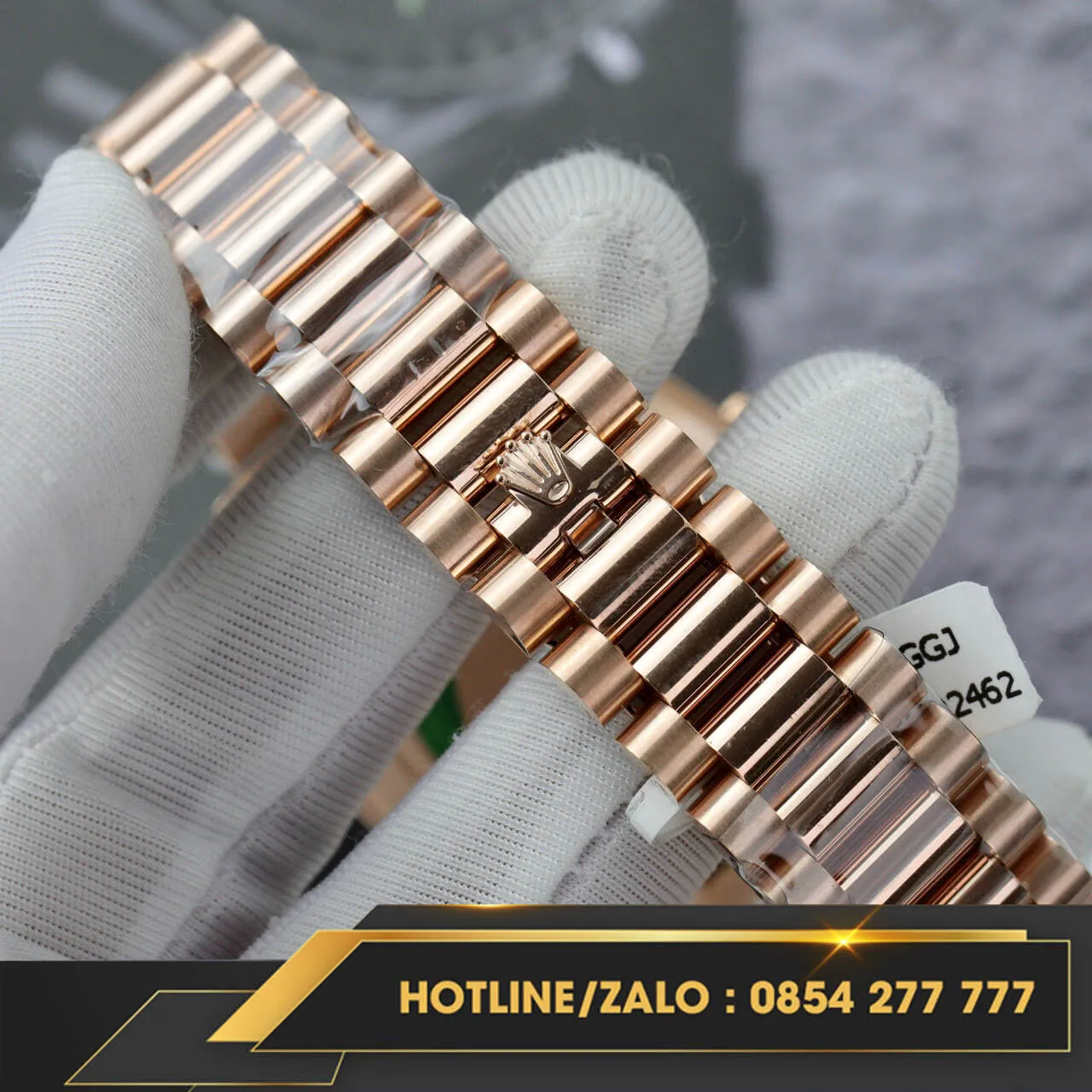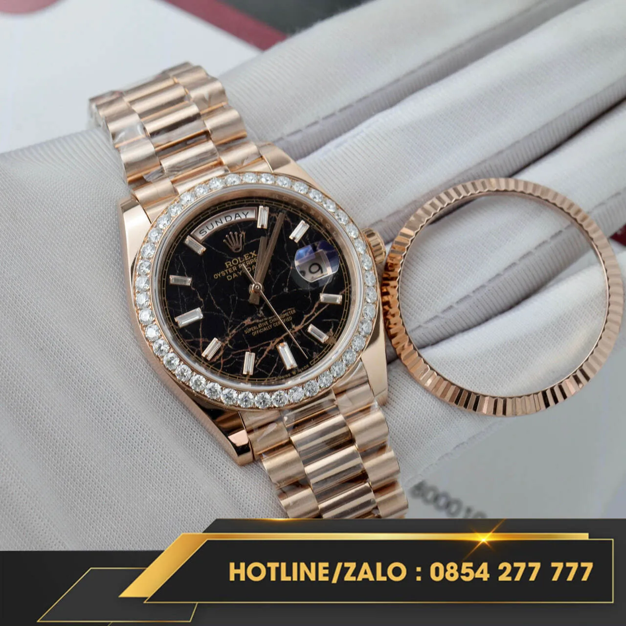 Đồng hồ Rolex Rep 1:1 Day Date mặt thạch anh bọc vàng 18k kim Moissanite là biểu tượng của sự sang trọng và đẳng cấp. Với thiết kế tinh xảo, chiếc đồng hồ này nổi bật với mặt số thạch anh tinh tế, các chi tiết được hoàn thiện tỉ mỉ và sắc nét. Kim Moissanite lấp lánh tạo điểm nhấn độc đáo, tăng thêm vẻ quý phái và cuốn hút. Phần vỏ và dây đeo được bọc vàng 18k, đảm bảo độ bền màu và sáng bóng vượt trội, làm tăng thêm giá trị cho sản phẩm.