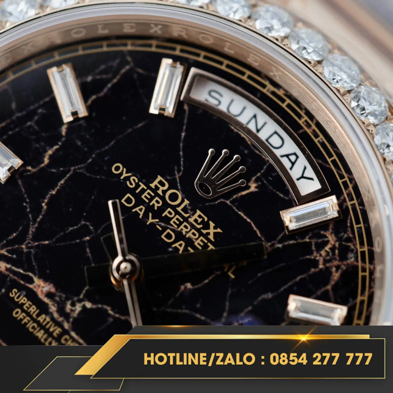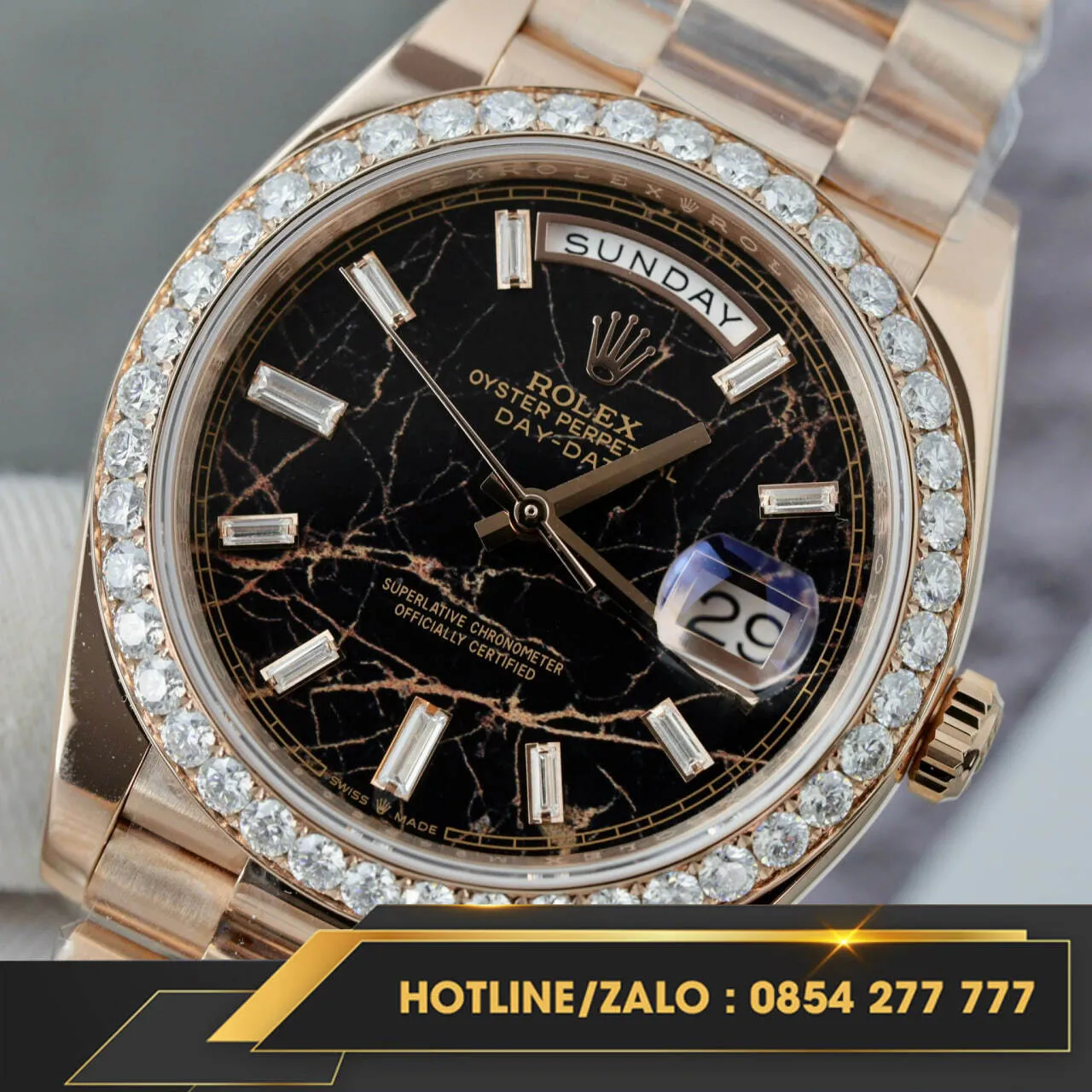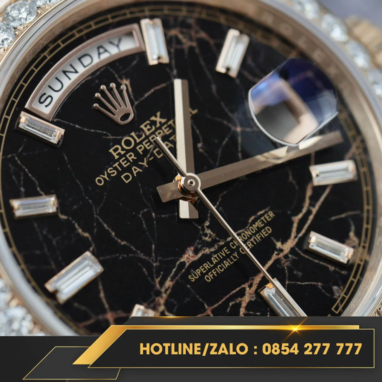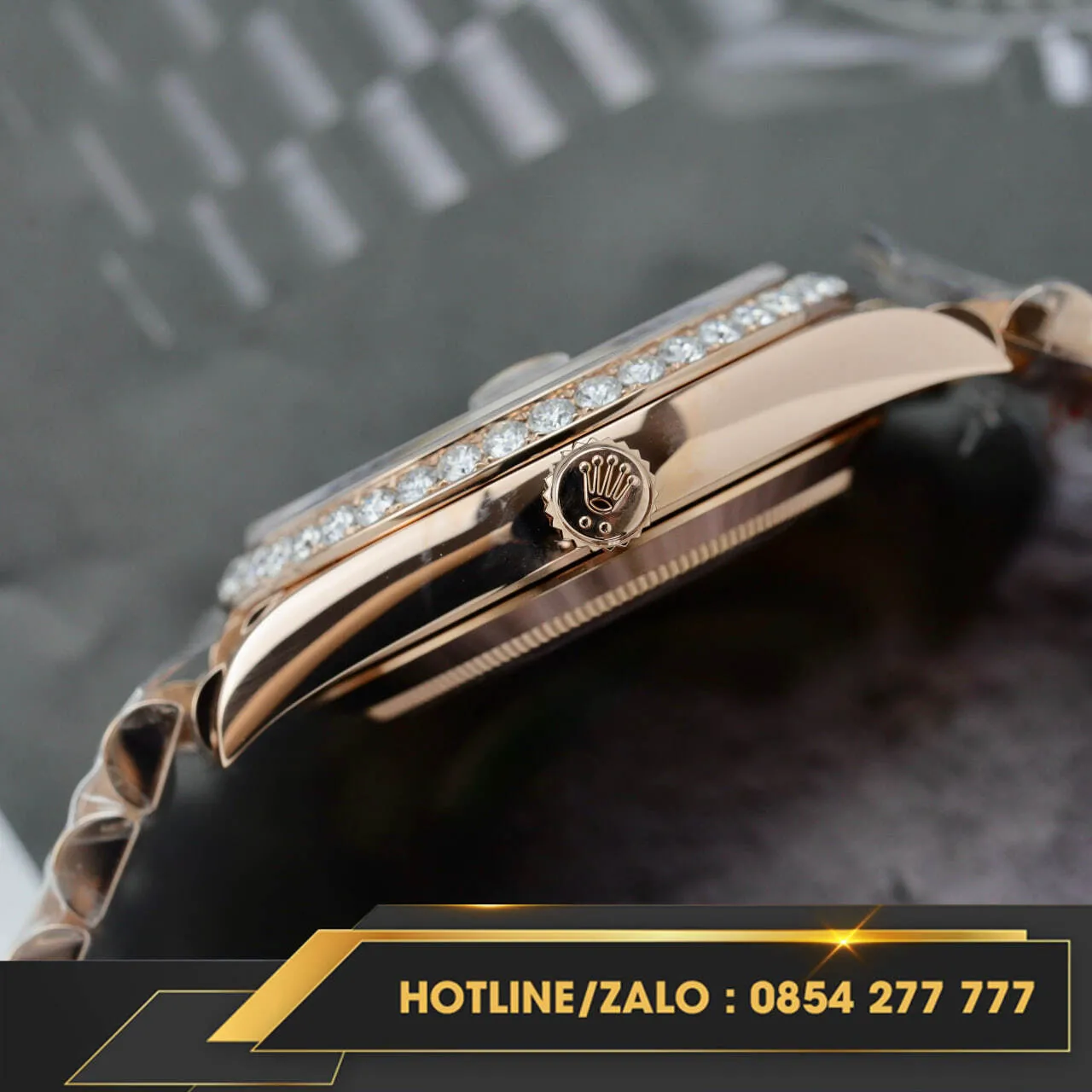 Đồng hồ Rolex Rep 1:1 Day Date mặt thạch anh bọc vàng 18k kim Moissanite là biểu tượng của sự sang trọng và đẳng cấp. Với thiết kế tinh xảo, chiếc đồng hồ này nổi bật với mặt số thạch anh tinh tế, các chi tiết được hoàn thiện tỉ mỉ và sắc nét. Kim Moissanite lấp lánh tạo điểm nhấn độc đáo, tăng thêm vẻ quý phái và cuốn hút. Phần vỏ và dây đeo được bọc vàng 18k, đảm bảo độ bền màu và sáng bóng vượt trội, làm tăng thêm giá trị cho sản phẩm.