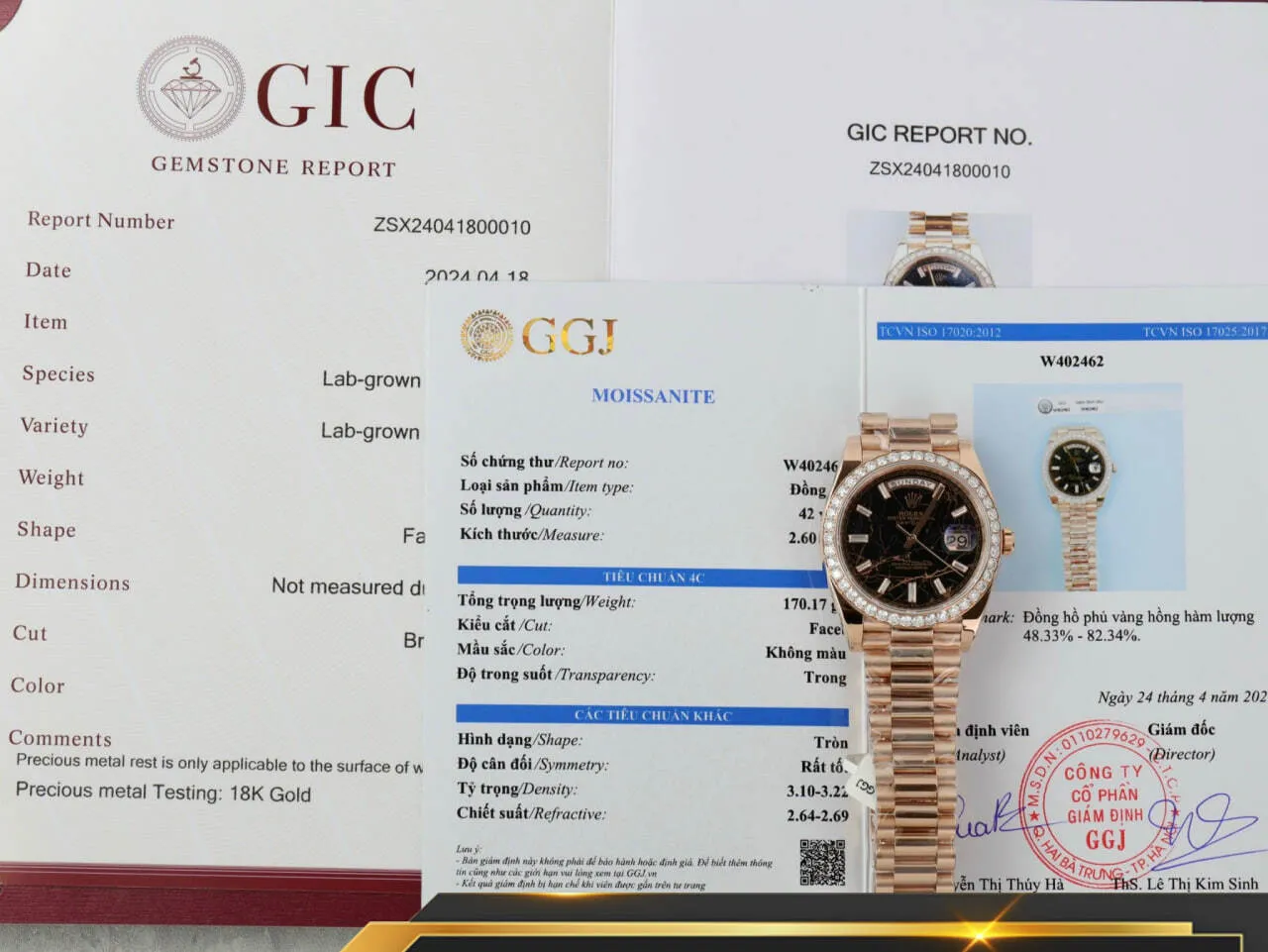 Đồng hồ Rolex Day Date mặt thạch anh bọc vàng 18k kim Moissanite không chỉ mang lại vẻ ngoài lộng lẫy mà còn thể hiện chất lượng hoàn hảo. Với việc sử dụng vàng 18k và kim Moissanite, sản phẩm luôn giữ được độ sáng bóng và vẻ đẹp lâu dài. Trọng lượng 170 gram được tinh chỉnh chuẩn Auth 99,99%, mang lại cảm giác chắc chắn và sang trọng. Hiện tại, đồng hồ Rolex Day Date mặt thạch anh bọc vàng 18k kim Moissanite đang có sẵn tại donghovangkhoi.vn. Liên hệ với chúng tôi ngay hôm nay để sở hữu cho mình chiếc đồng hồ đẳng cấp này.
