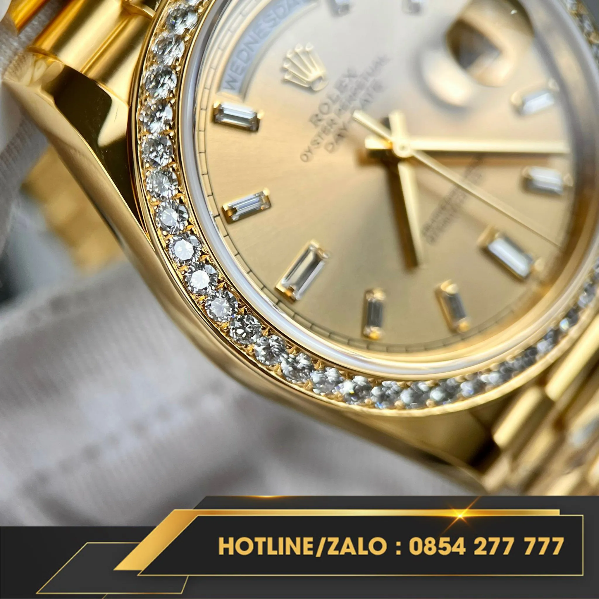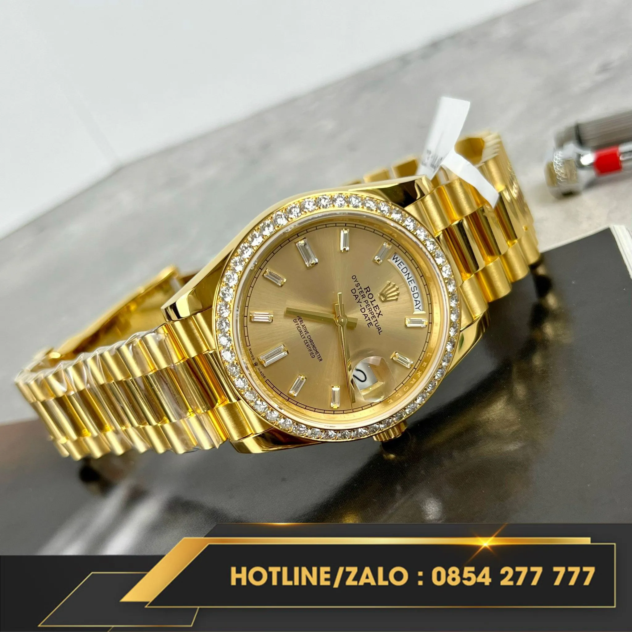 Đồng hồ rolex daydate v3 175g bọc vàng viền moissanite