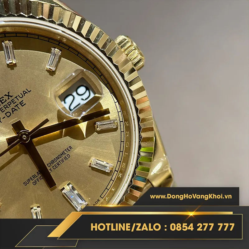 Đồng hồ rolex daydate yellow gold 166g cọc số baguette