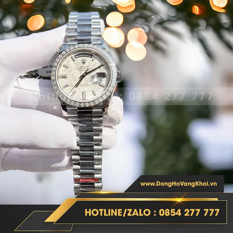 Đồng hồ rolex daytona 40mm độ mặt thiên thạch viền kim cương baguette moissanite
