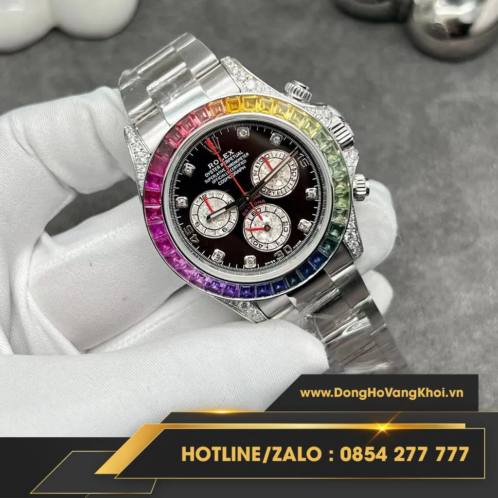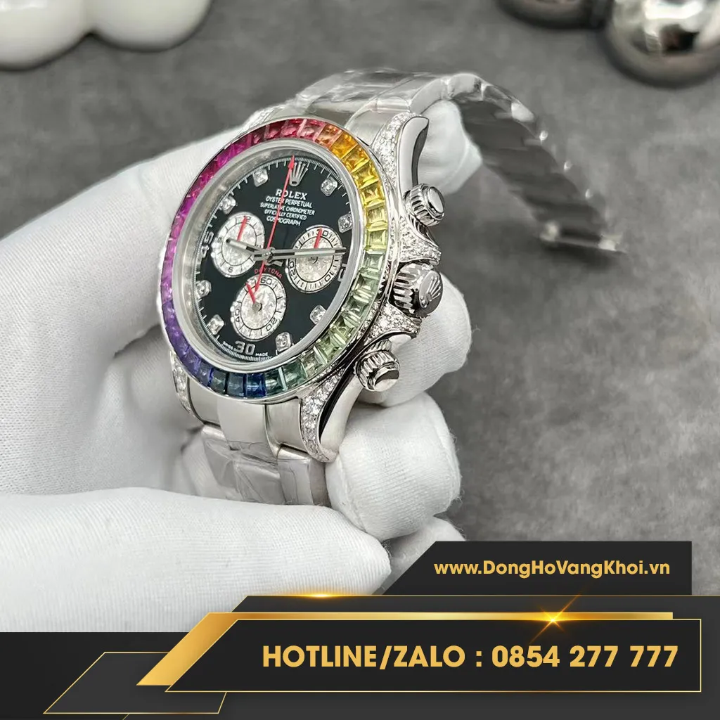 Đồng hồ Rolex daytona cosmograp rainbow 116599 chế tác vàng trắng 18k, kim cương thiên nhiên