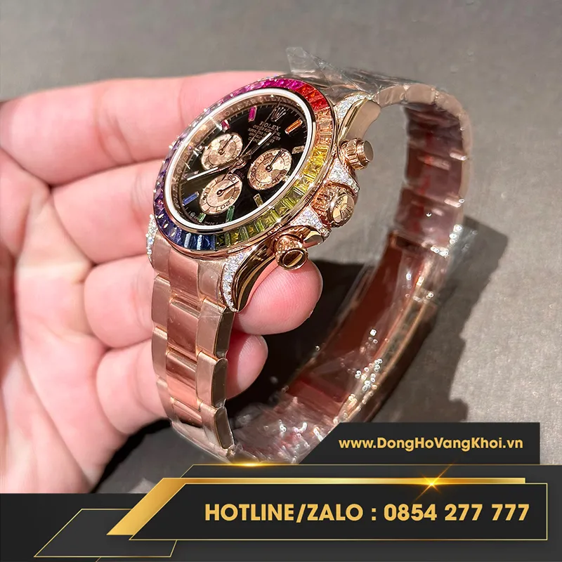 Đồng hồ rolex daytona rainbow bọc vàng độ moissanite