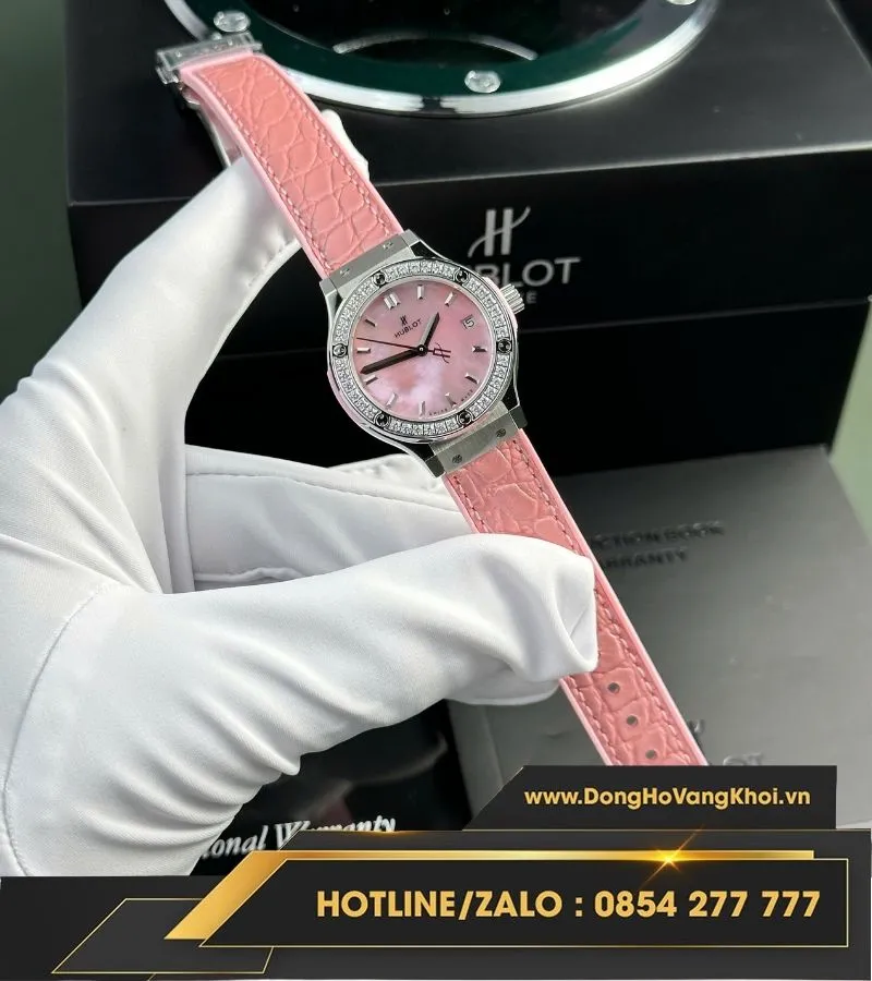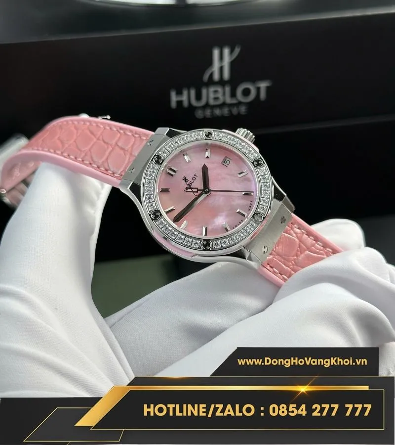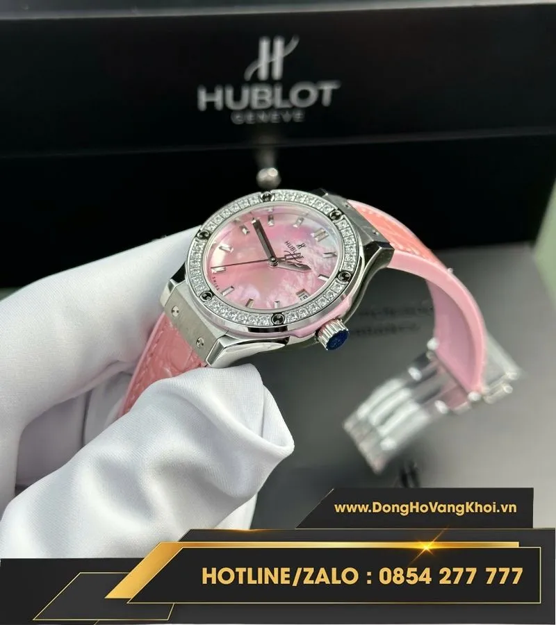 • size 33mm• máy pin Quartz Thuỵ Sỹ• phiên bản mặt số khảm trai hồng cực độc vừa mới ra mắt của nhà máy HB