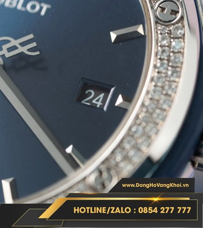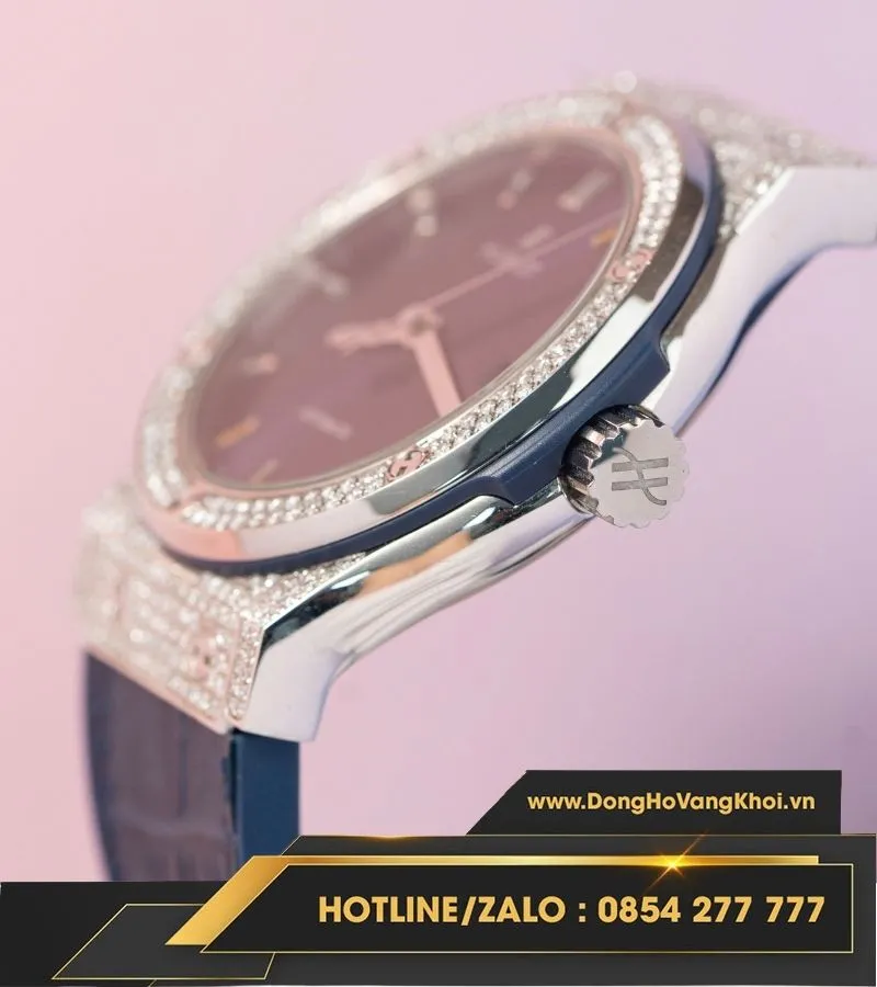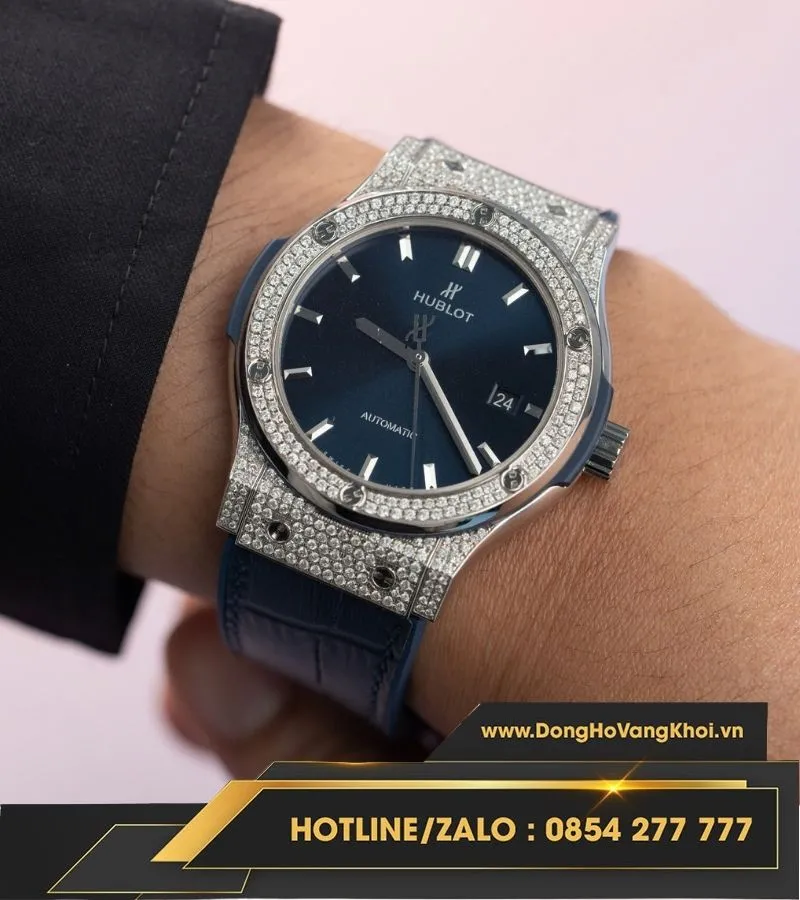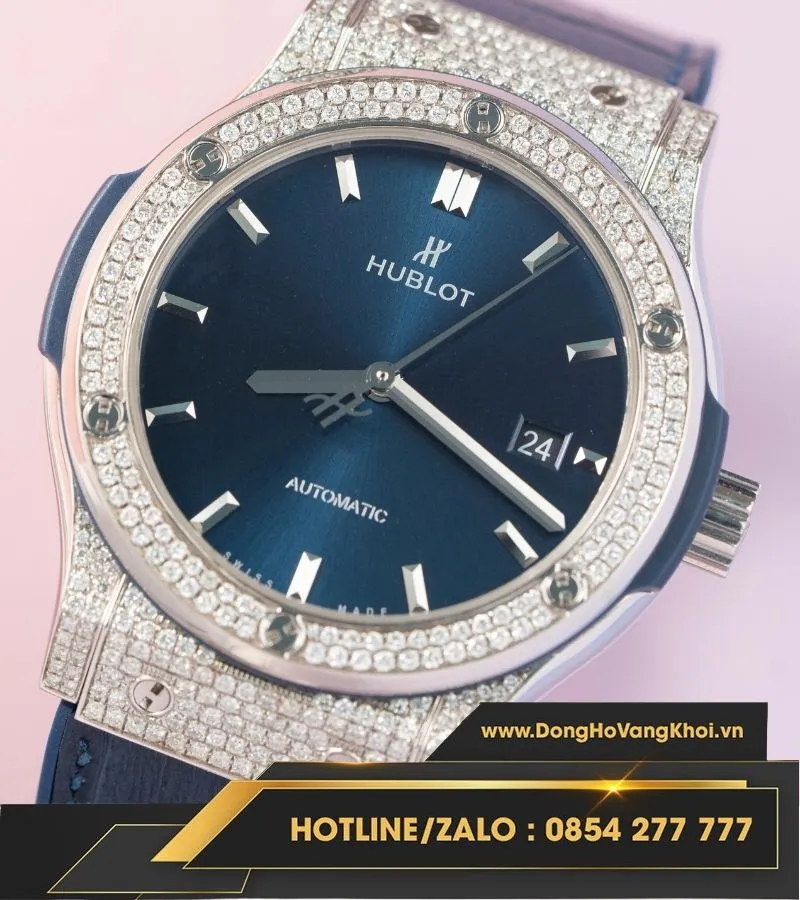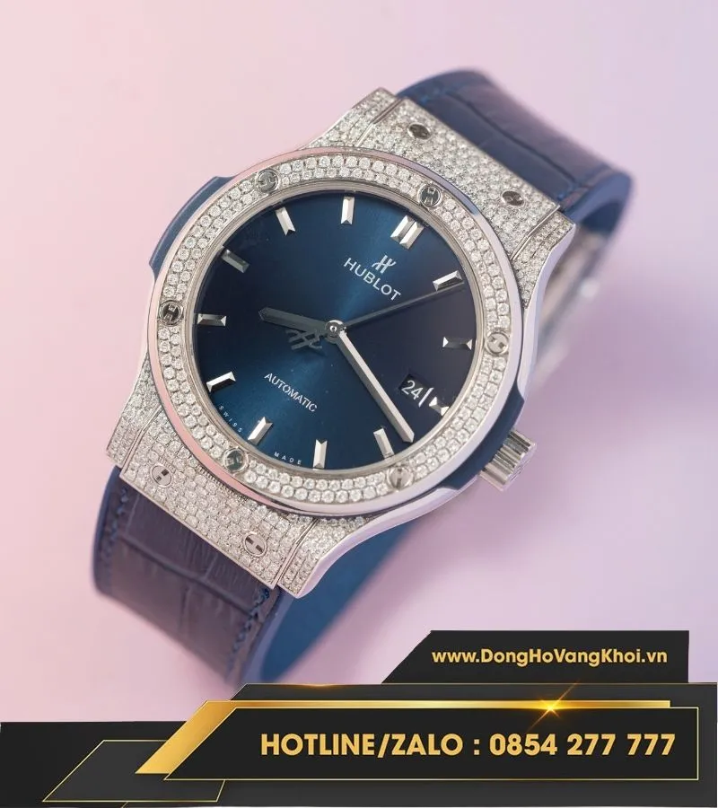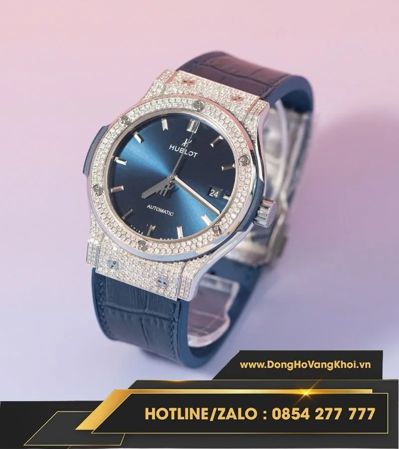 Dial xanh navy dây da, thân vỏ độ full kim cương thiên nhiên tuyển chọn. Máy 2892 Tích cót 50H.
