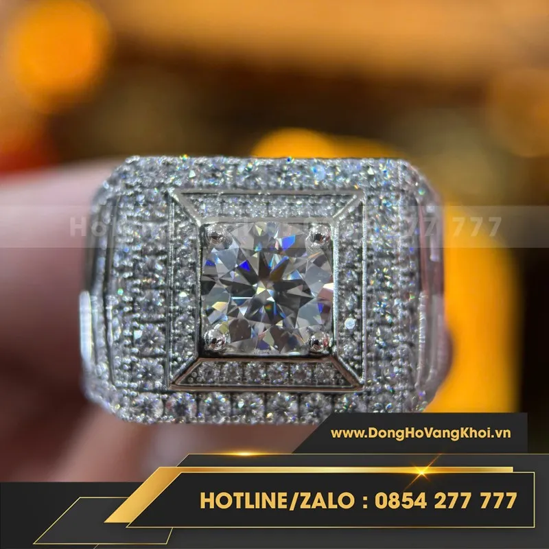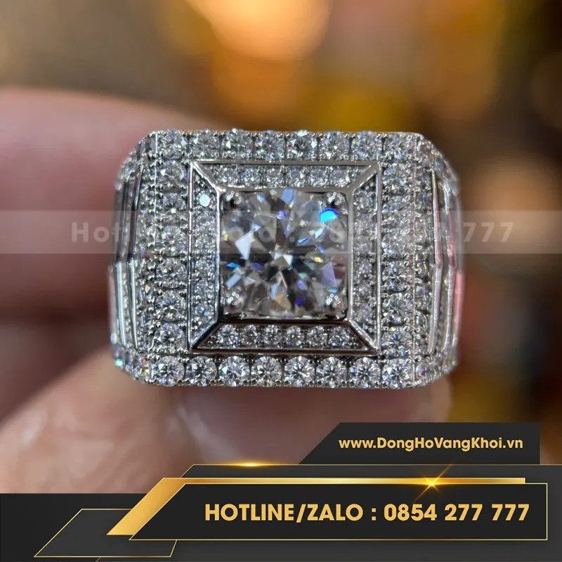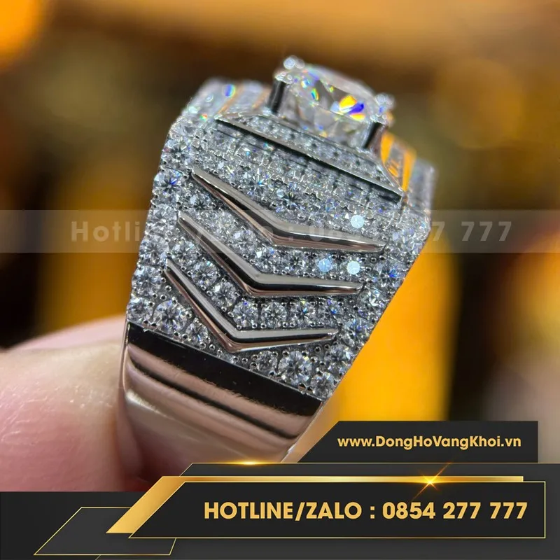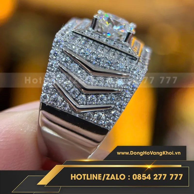 Nhẫn Nam Thiết Kế Vertu Vàng Trắng Moissanite