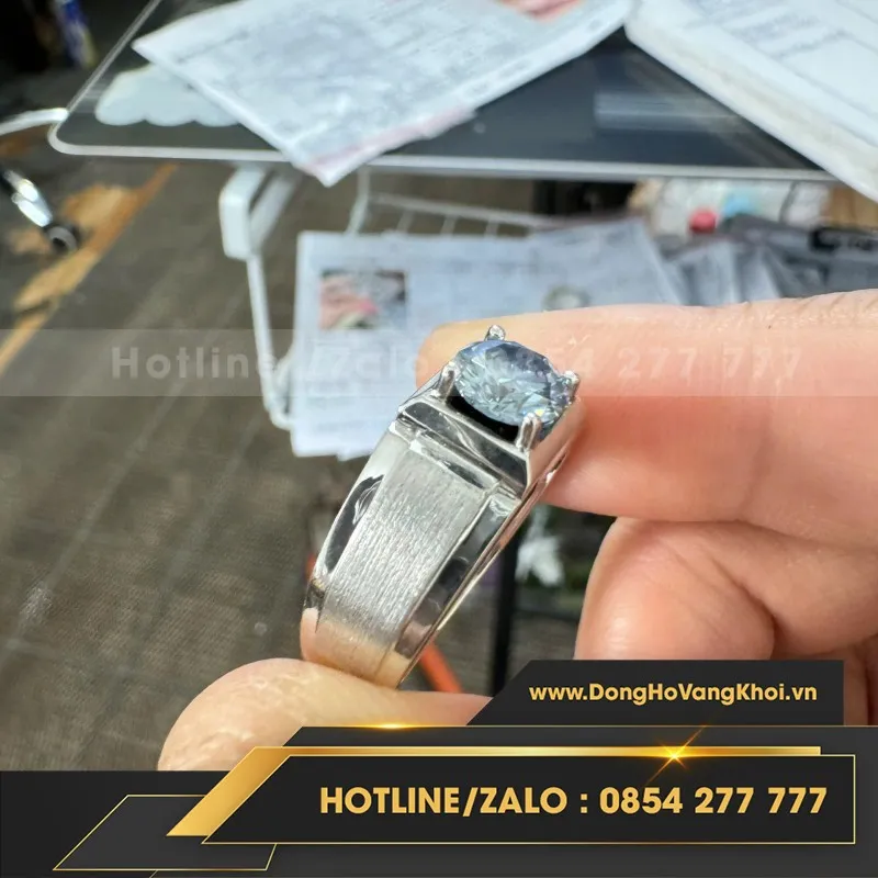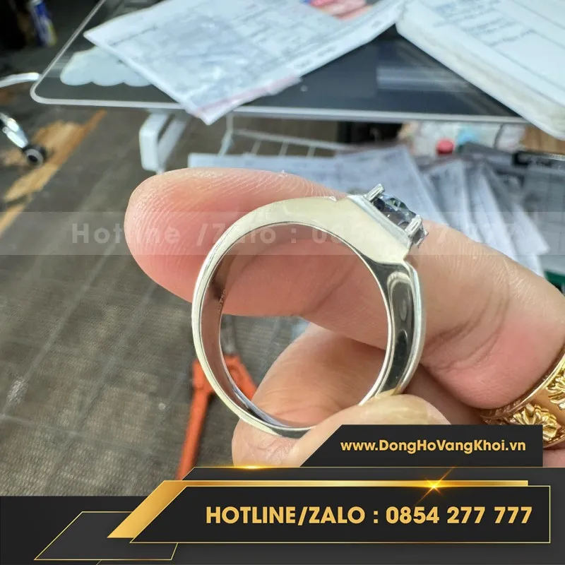 Ổ Nhẫn Vàng Trắng 18K Đá Moissanite Xanh