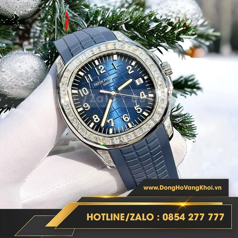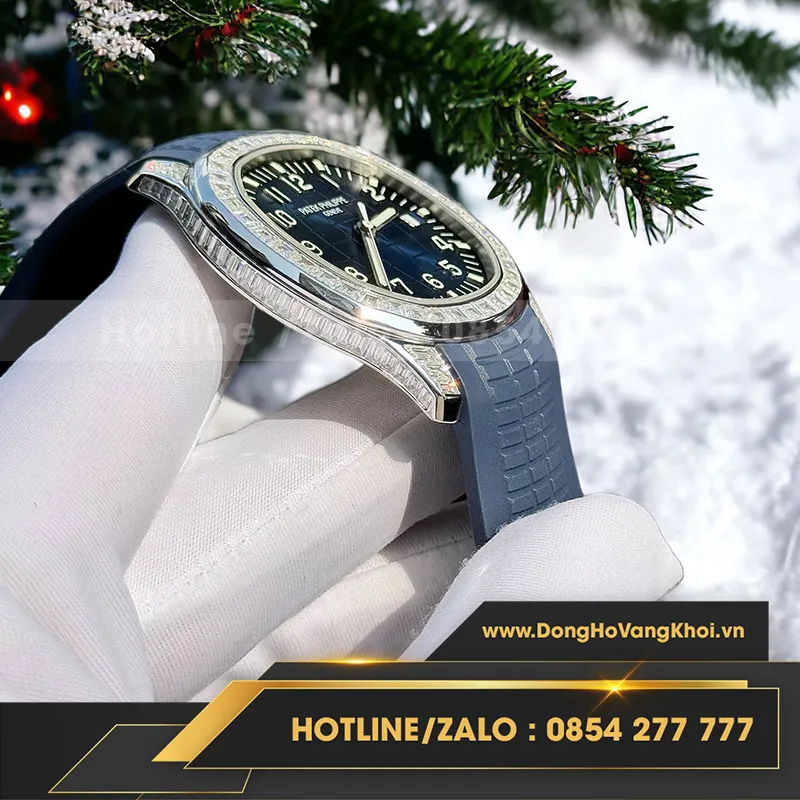 Patek philippe aquanaut 5168g blue độ kim cương moissanite baguette
