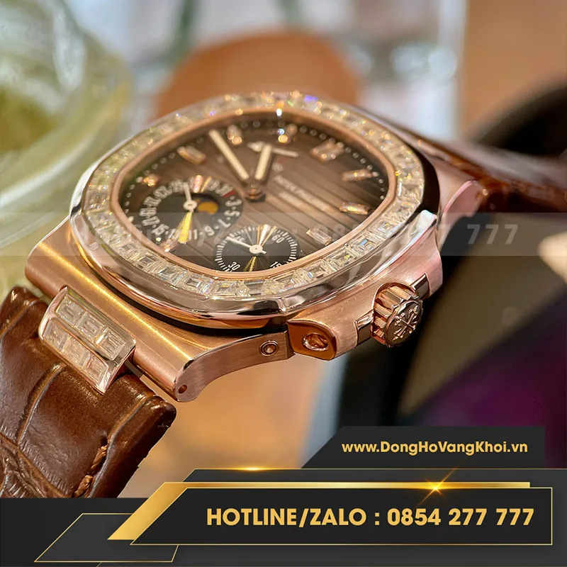 Patek philippe nautilus 5724r bọc vàng độ moissanite baguette