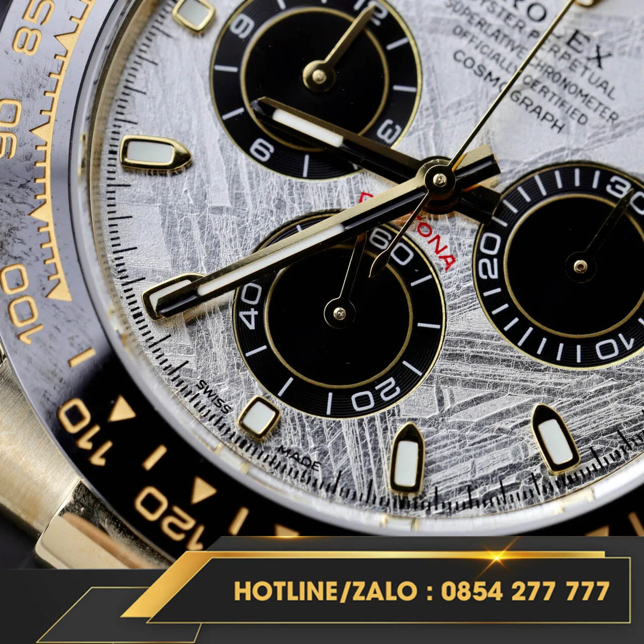 Rolex Cosmograph Daytona 116509 Mặt Thiên Thạch là lựa chọn hoàn hảo cho những ai đam mê sự tinh tế và sang trọng. Với mặt thiên thạch vượt trội và chi tiết chế tác tỉ mỉ, đây là biểu tượng của sự đẳng cấp và thể hiện phong cách cá nhân độc đáo.