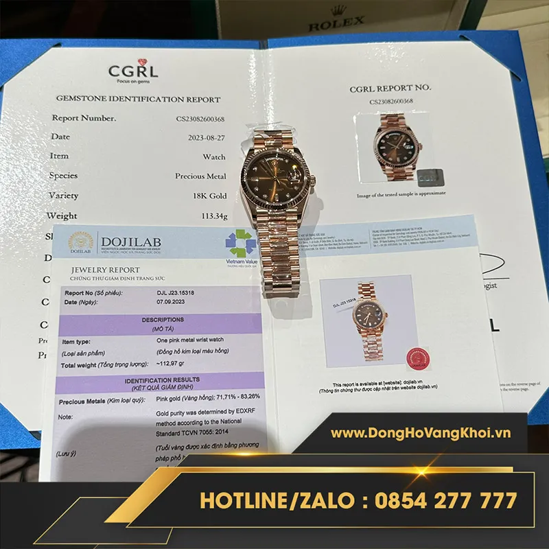 Rolex daydate 36 128235 vàng hồng bọc vàng