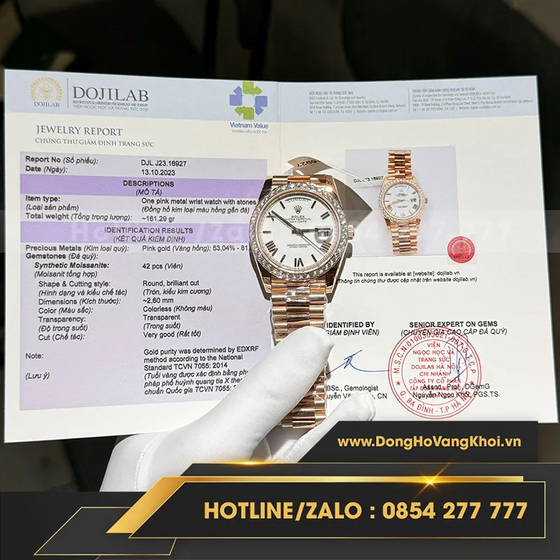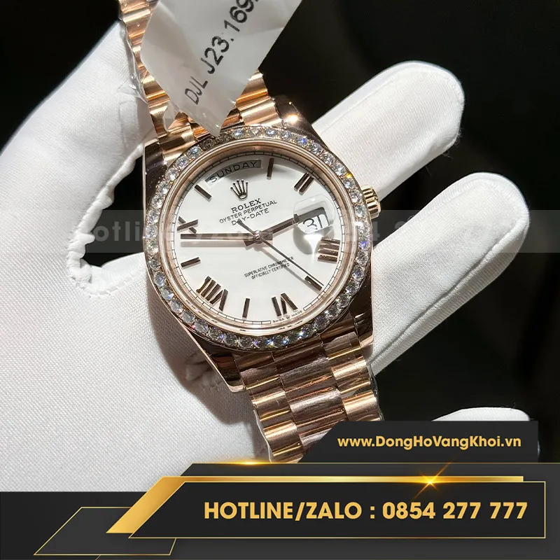 Rolex daydate bọc vàng viền kim cương moissanite