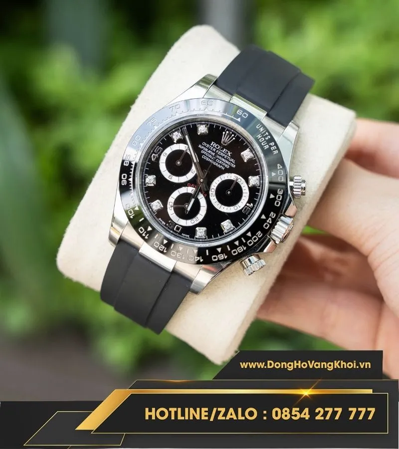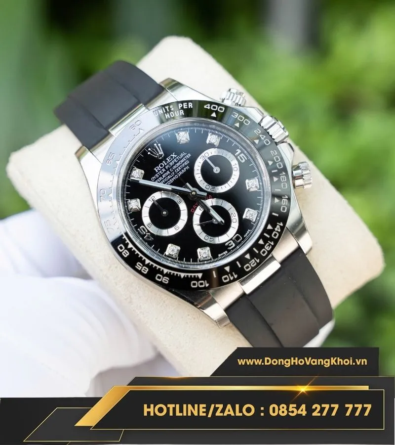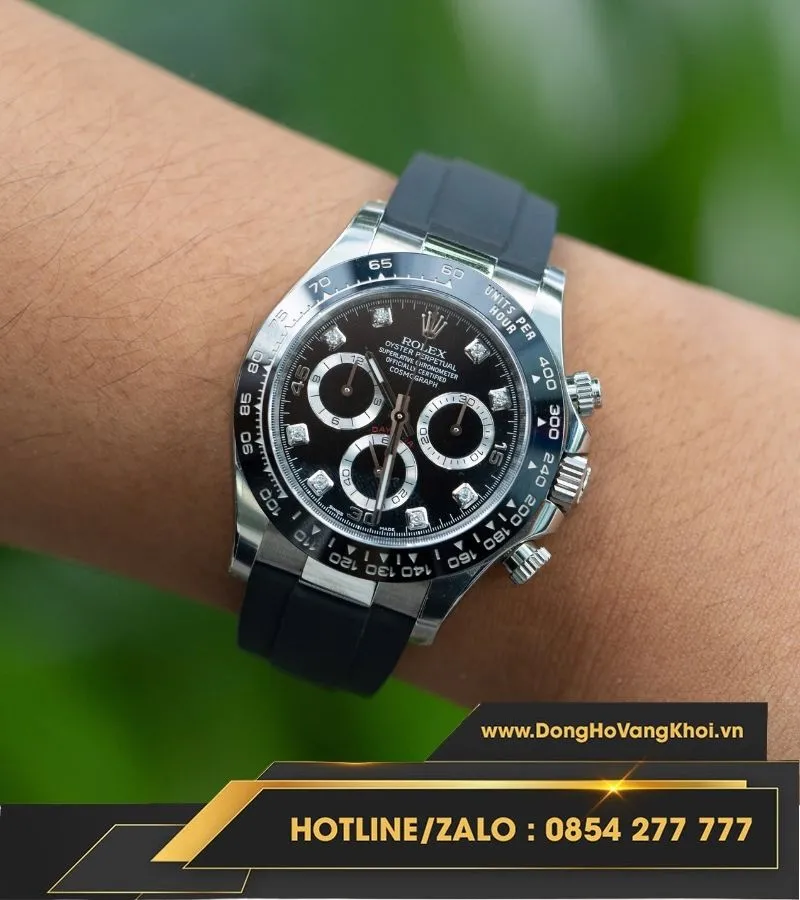Chất liệu thép 904L sáng bóng Niềng Ceramic tương đồng với hàng xịn. Dây cao su “Oyster Flex” thoáng khí khi đeo tay. Độ mỏng thân vỏ chuẩn 12,3mm. Máy Caliber 4130 Dandong ổn định. Phiên bản chuẩn “Clean” -
