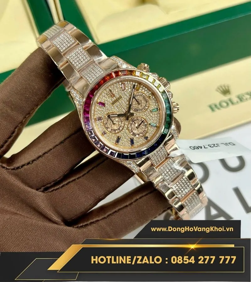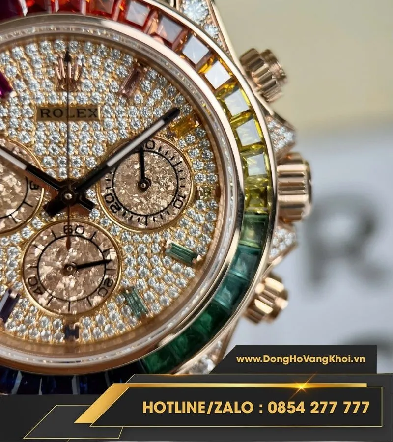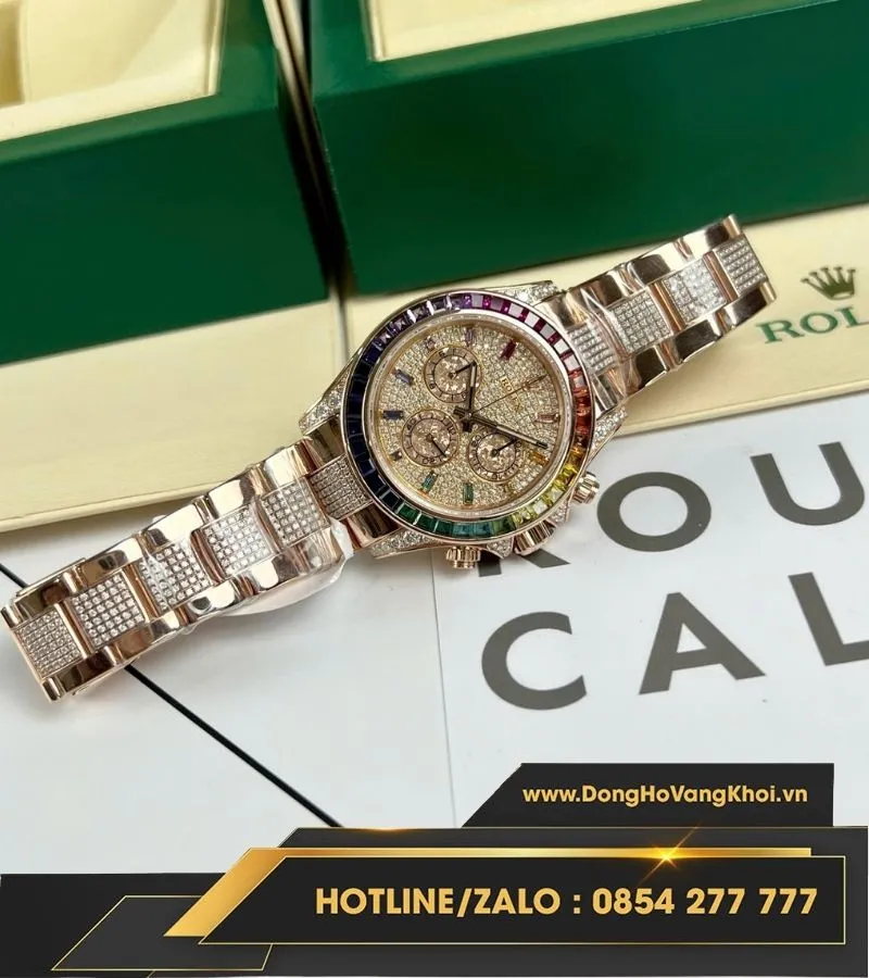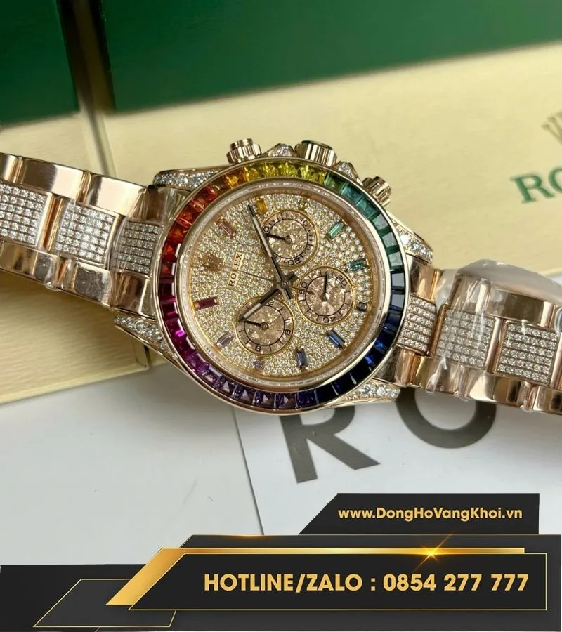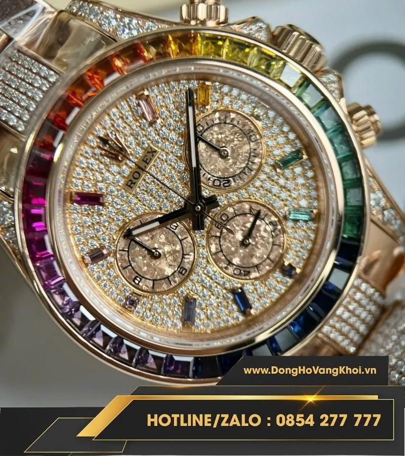 Rolex daytona rainbow bọc vàng độ kim moissanite
