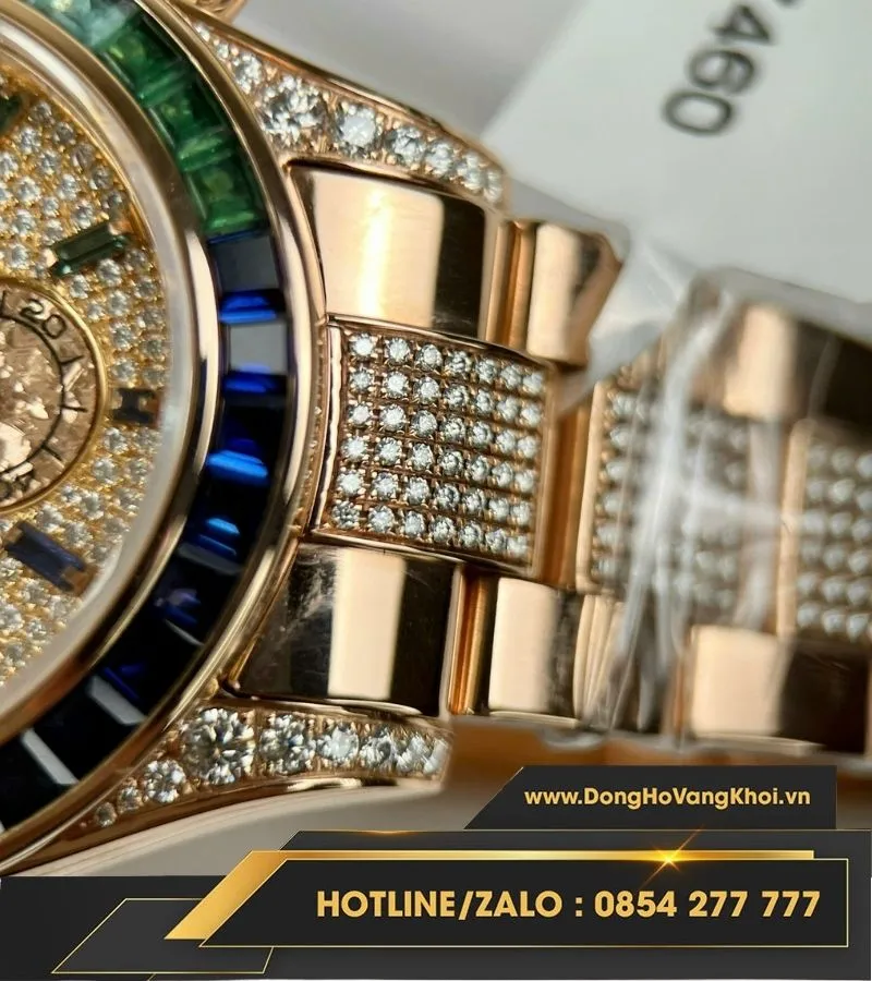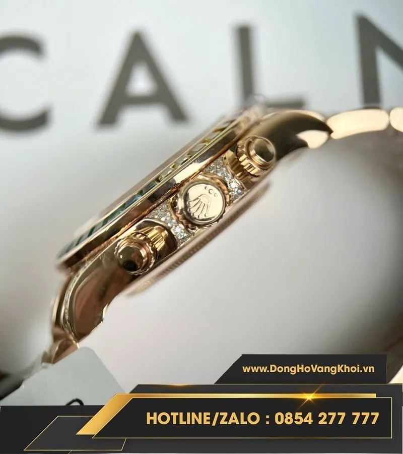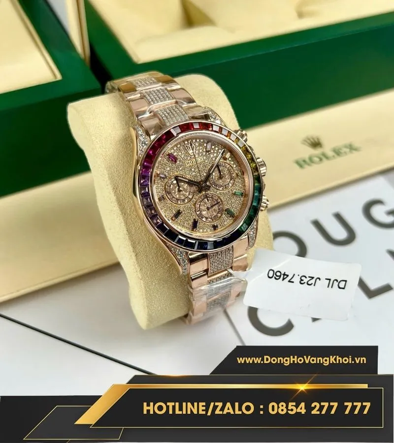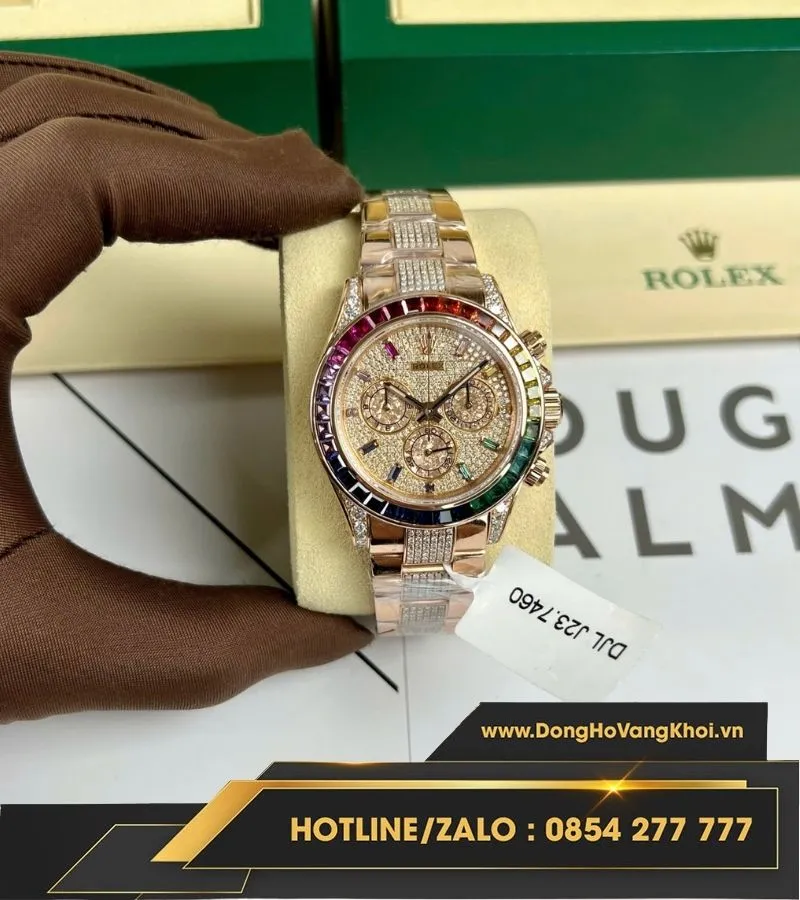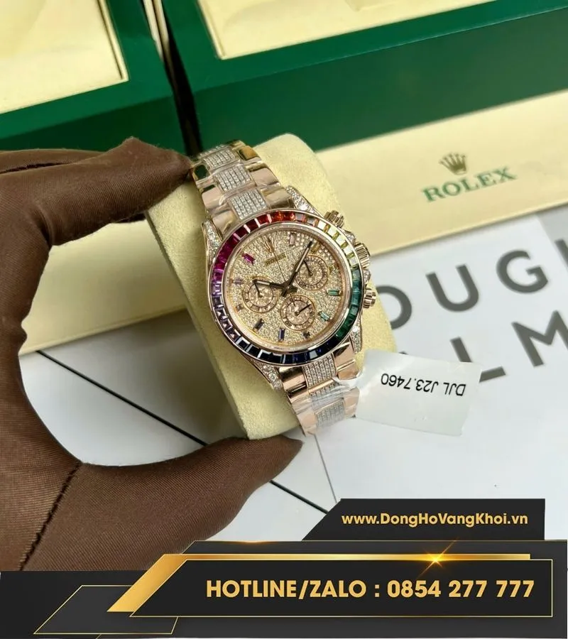 Rolex daytona rainbow bọc vàng độ kim moissanite