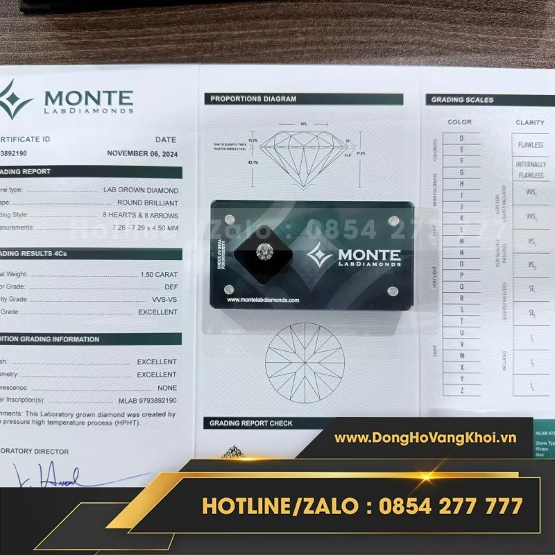 Viên Kim Cương Nuôi Cấy 7.2Mm-1.5Carat-H&Amp;A